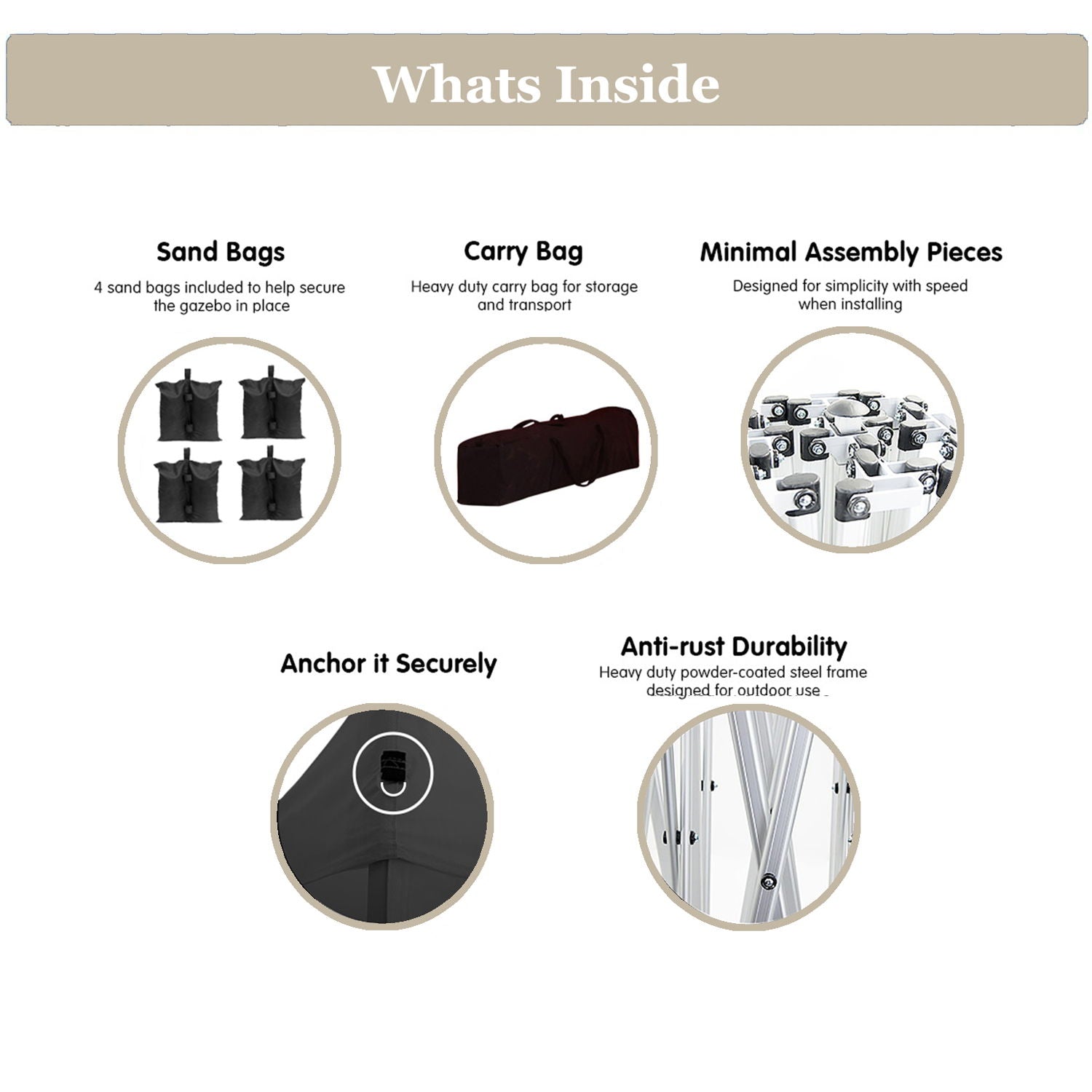 - High Quality Materials: Made of Oxford fabric with PU coating, this canopy is waterproof and blocks 99% of the sun's rays. Includes 4 sandbags, 6 sets of ground nails, and wind ropes for enhanced stability.