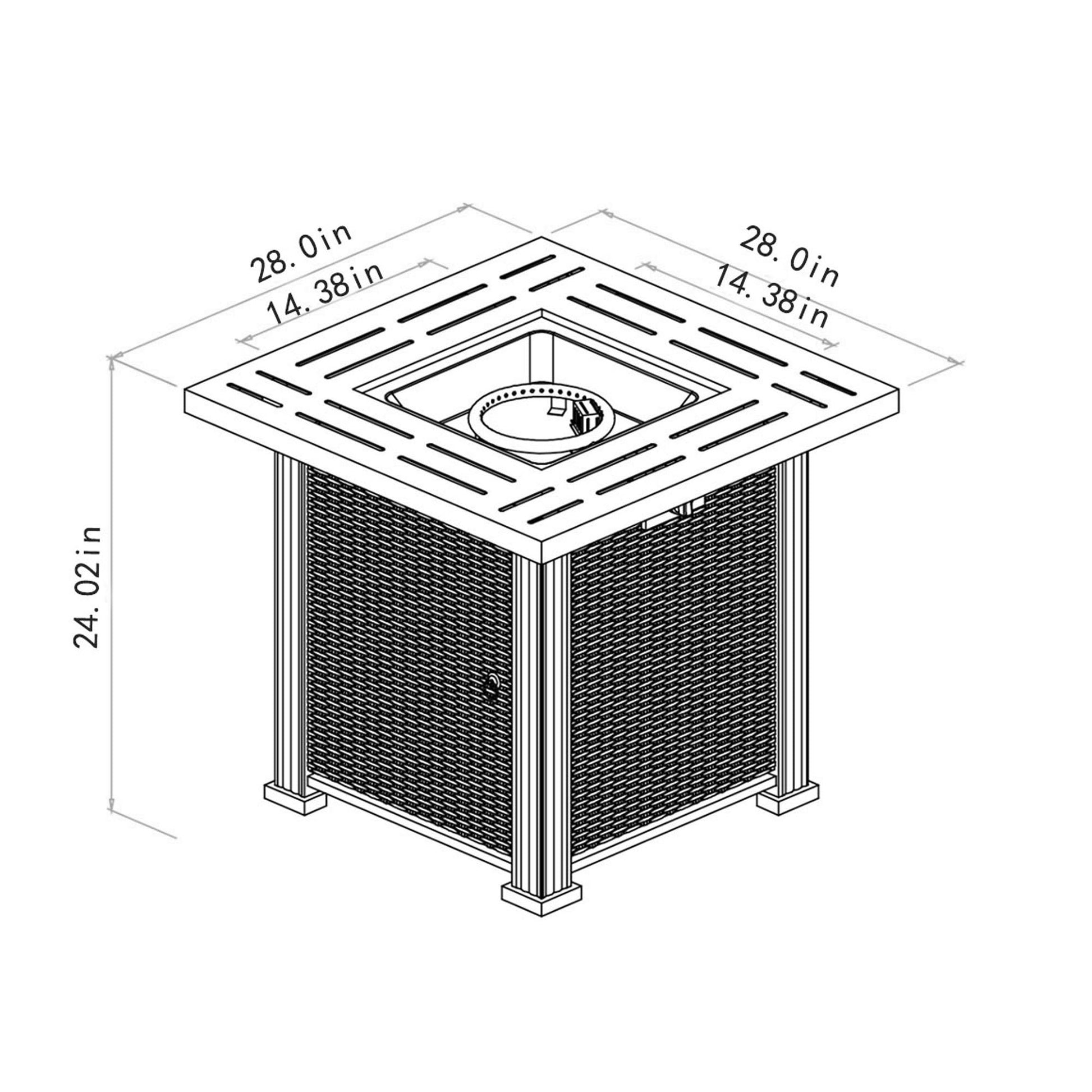 - Stylish & Safe Fire Pit: Features a powder-coated finish, hidden propane tank storage (tank not included), and decorative volcanic stone center. Its square design ensures safety while showcasing mesmerizing flames.