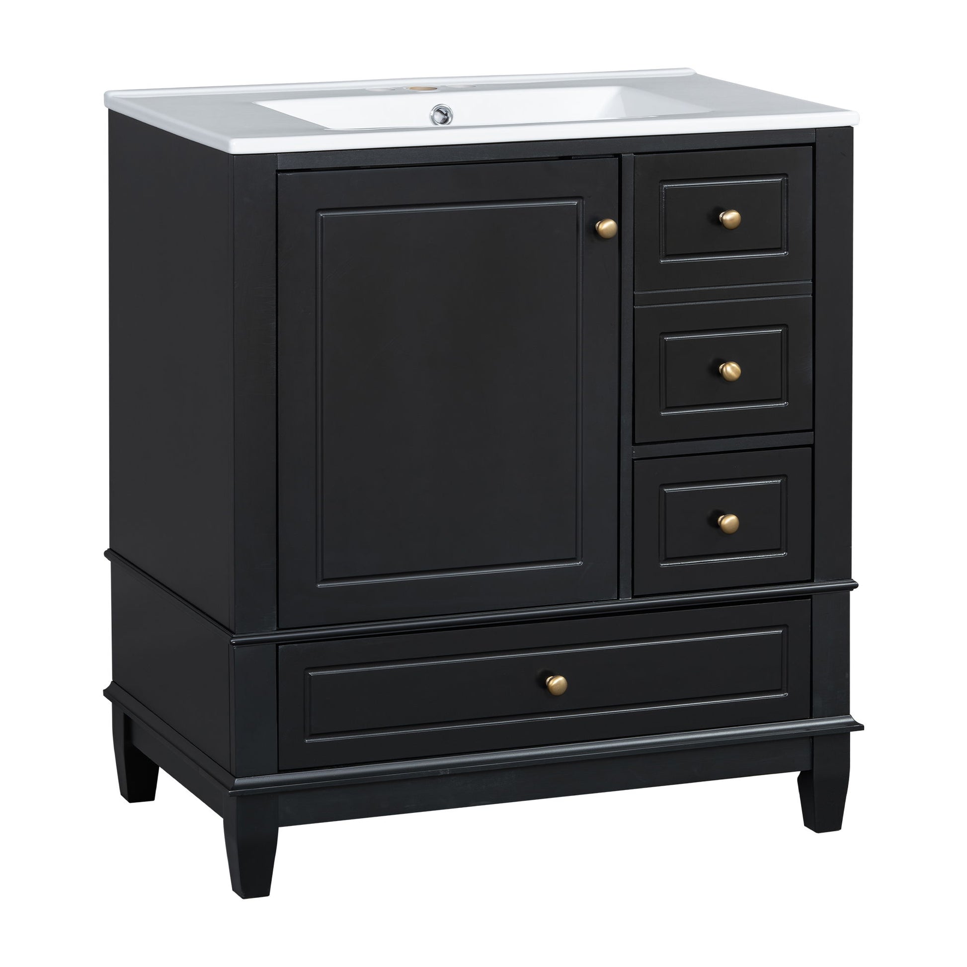30" Bathroom Vanity With Sink, 1 Door With Shelf And 3 Drawers, Soft Close Door - Black