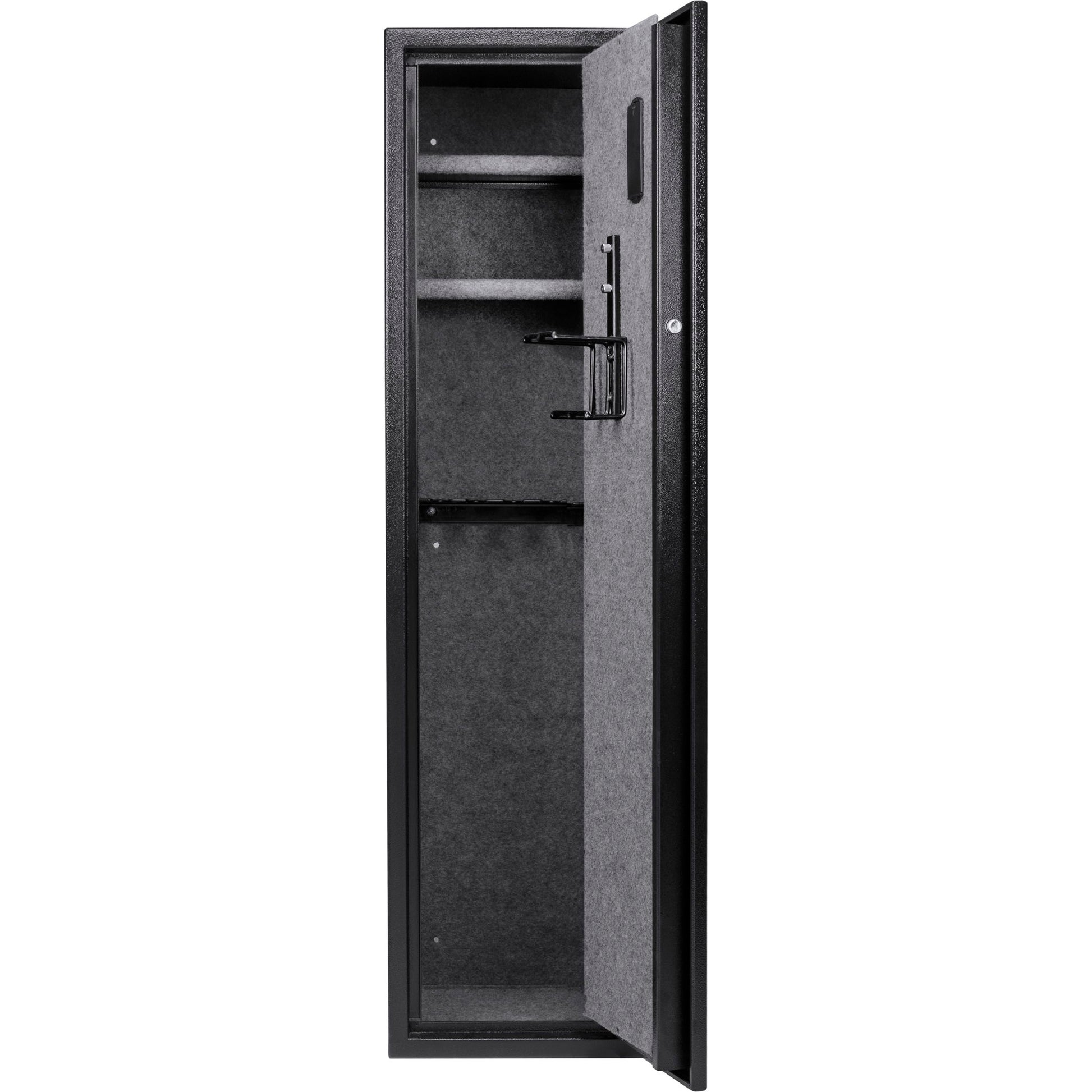 - Dual Access Security: Featuring both biometric and keypad access methods, this rifle safe provides versatile and enhanced security options for firearm storage.