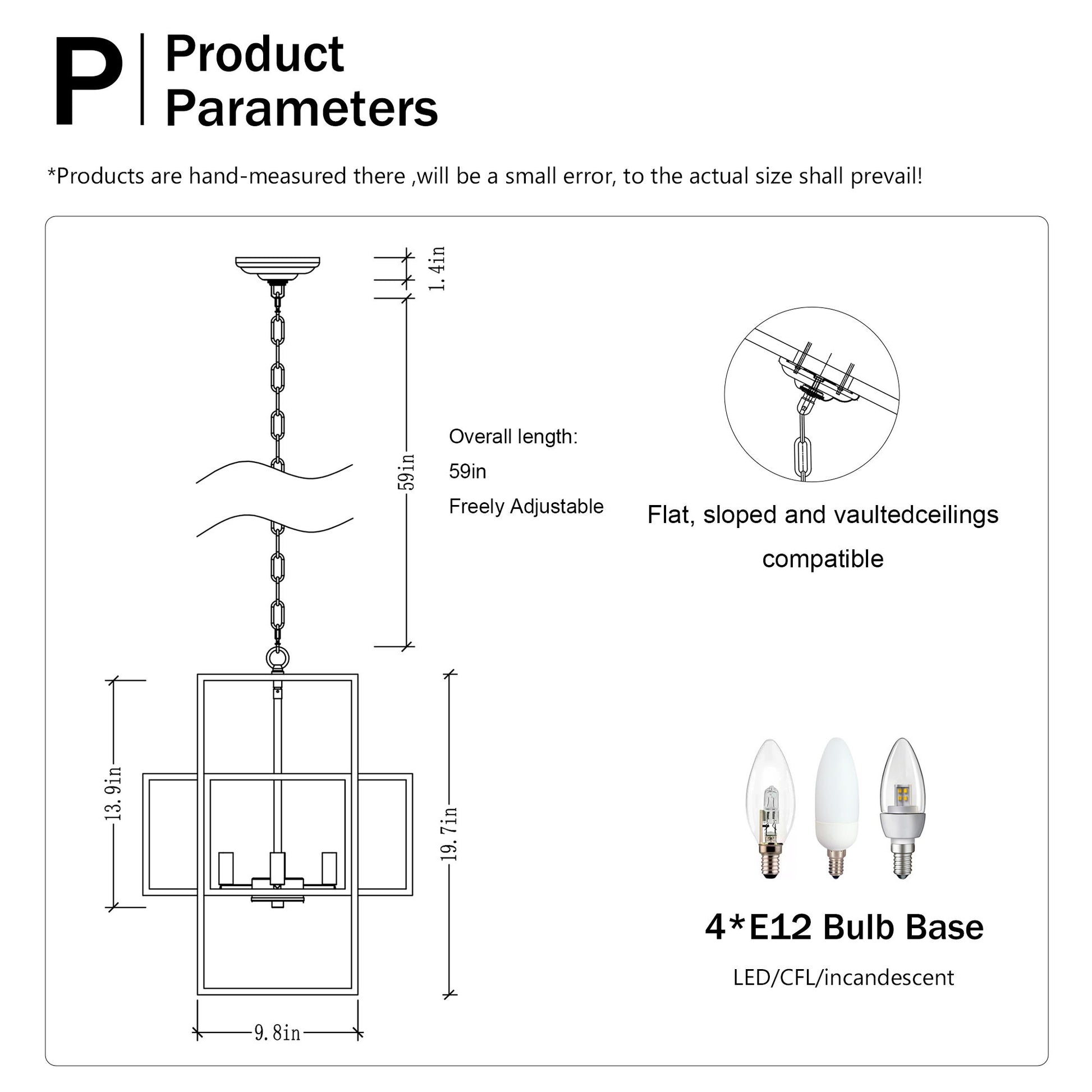 - Adjustable Height: With a maximum chain length of 59.06 inches, the chandelier's height can be adjusted as needed. It is suitable for flat, sloped, or vaulted ceilings, allowing for versatile installation options.