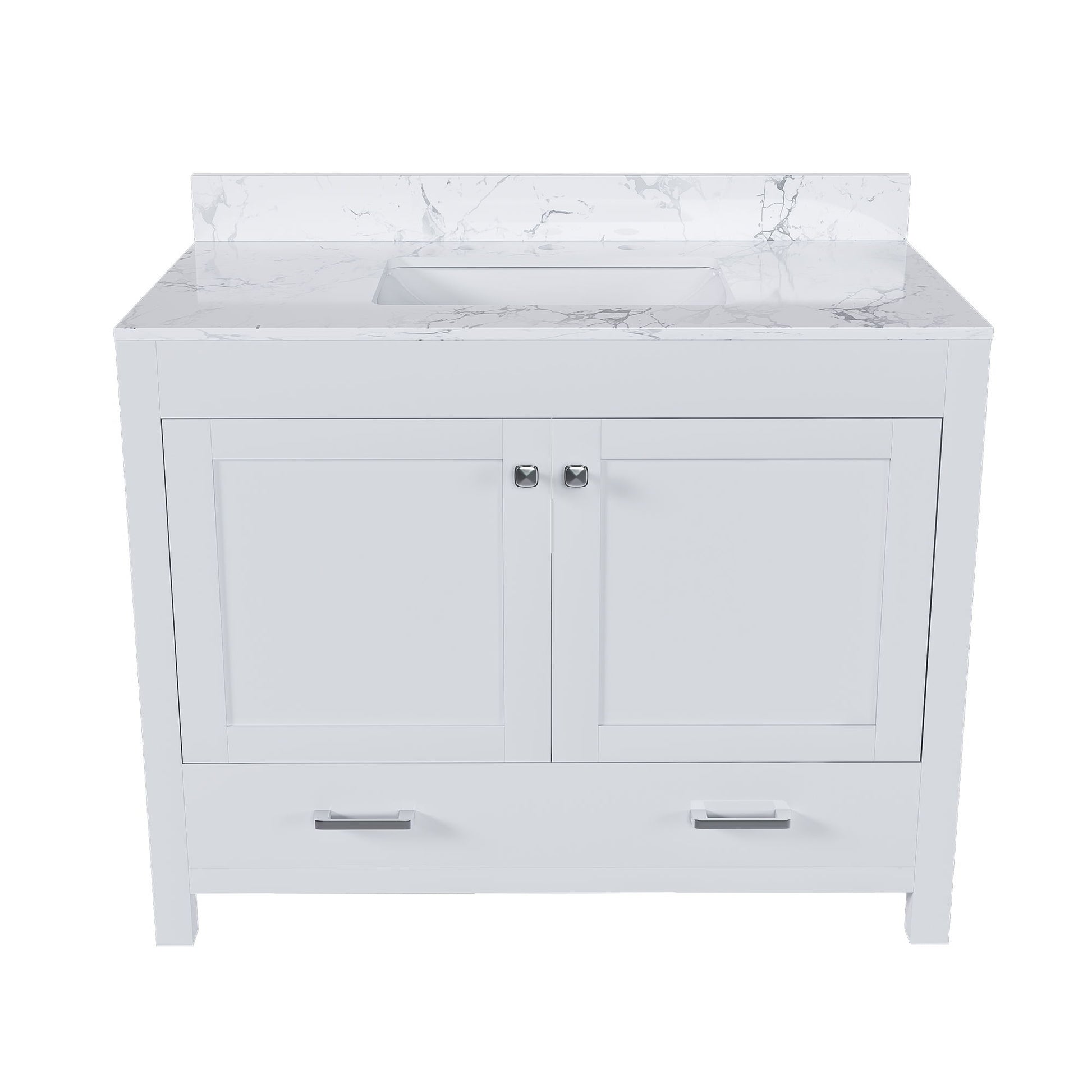 43" Bathroom Vanity With Artificial Marble Carrara Top Set, Multi Functional Bathroom Cabinet With Doors And Drawer - White