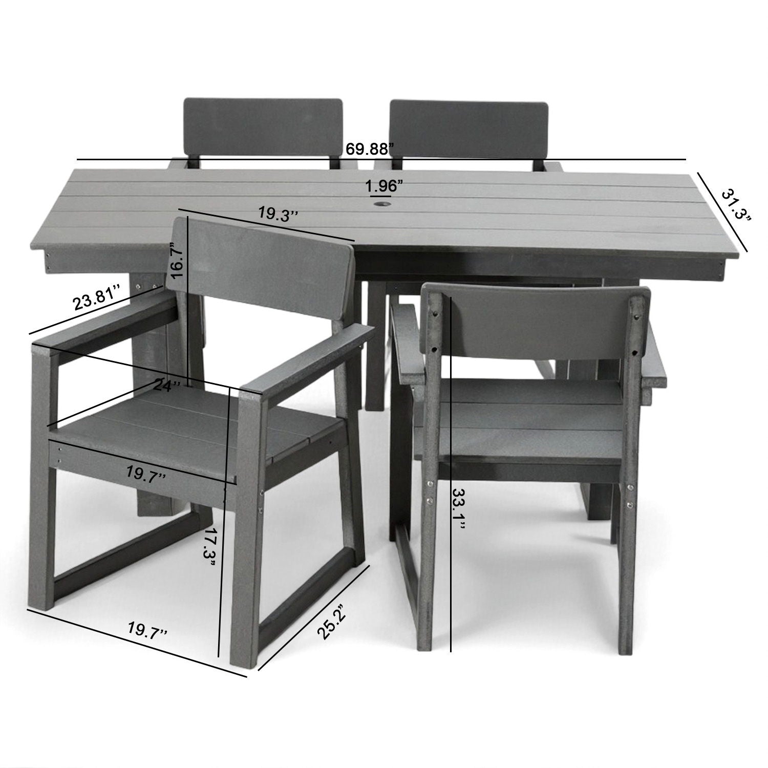 5 Piece Outdoor Dining Set, Table With Umbrella Hole And 4 Armrest Chairs