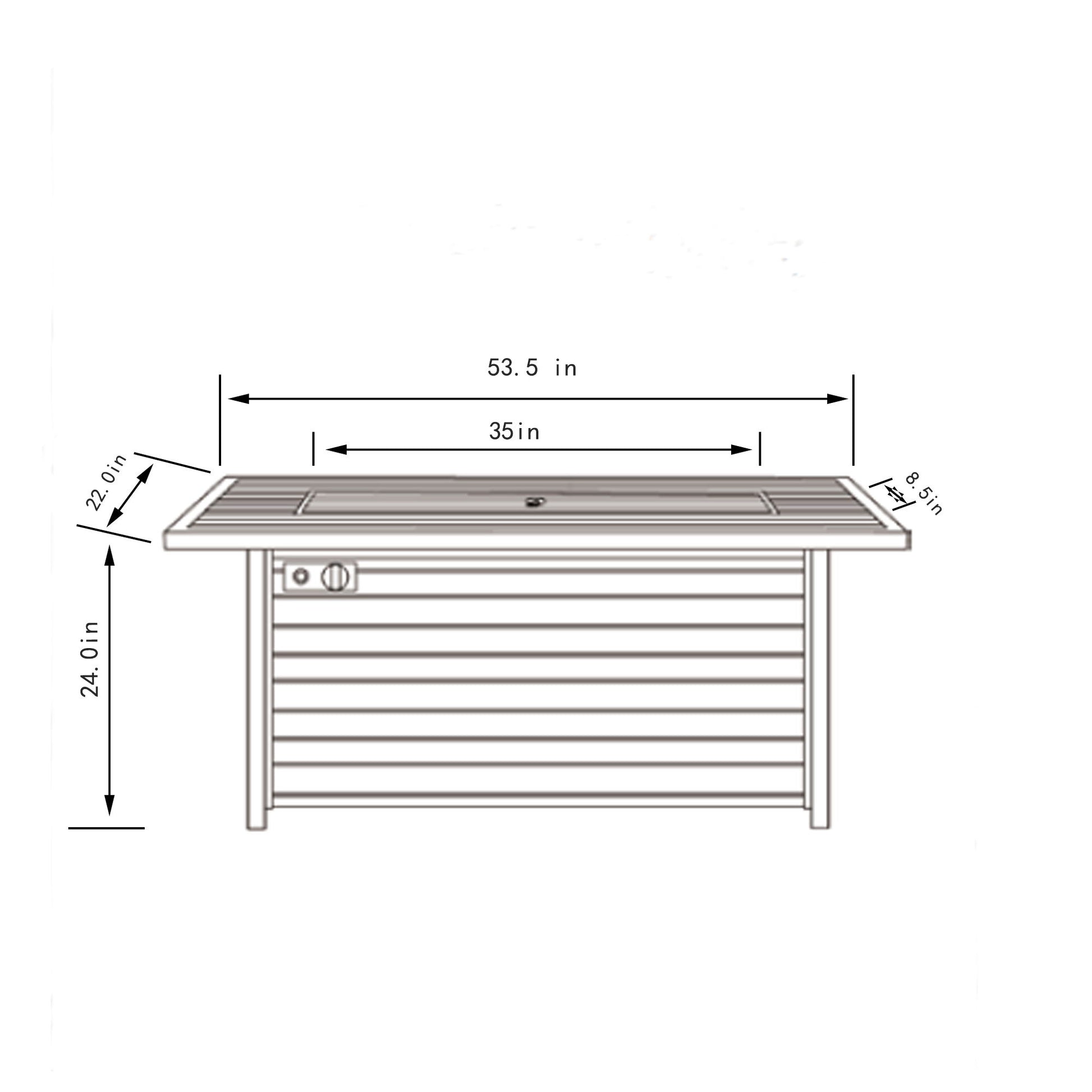 - Rustic & Durable: This 54" rectangular fire pit table features an iron surface with wood-grain texture, blending rustic charm with weather/heat-resistant durabilityperfect for year-round outdoor enjoyment.