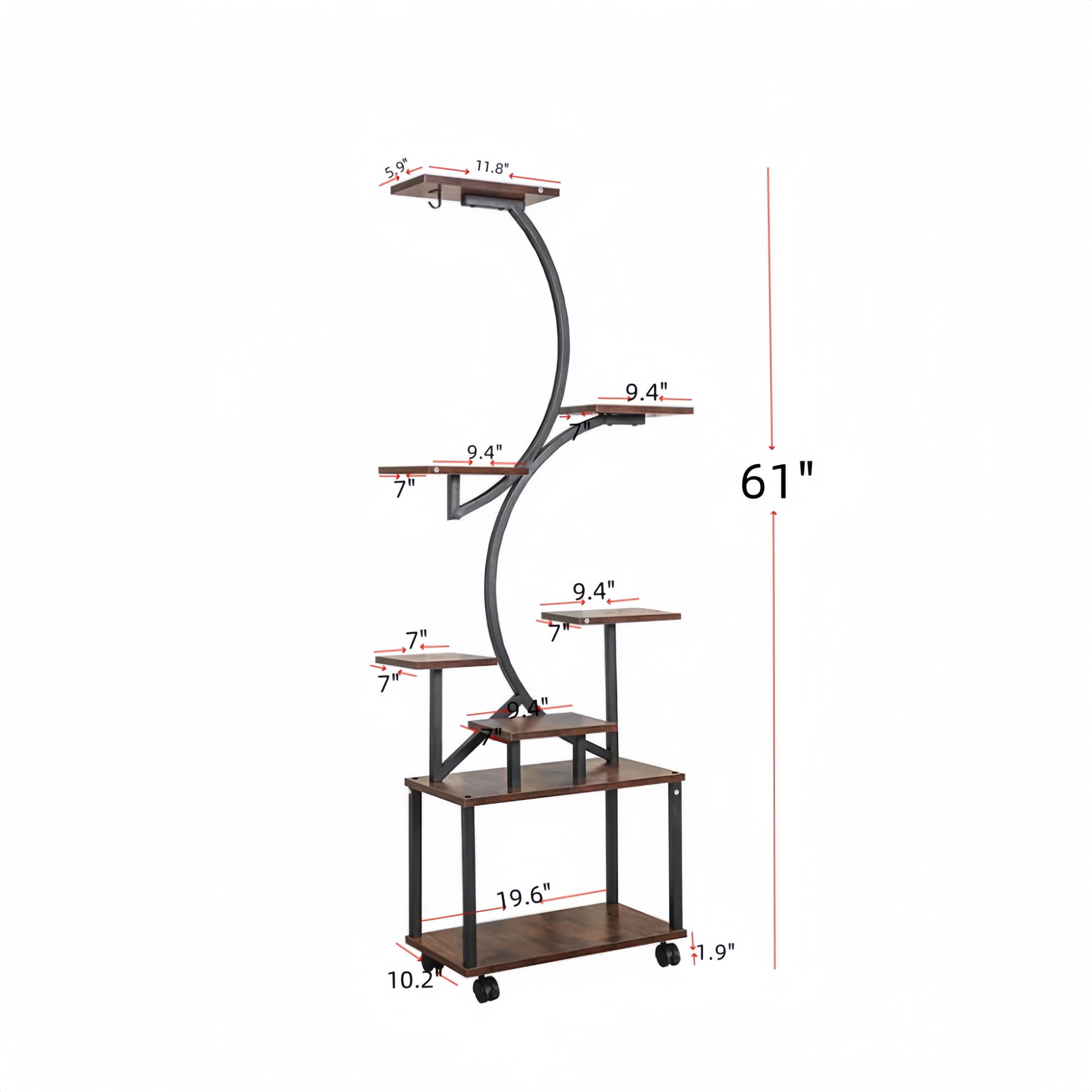 - Space-Saving Vertical Design: 62" tall S-shaped stand with 8 tiers and a hanging hook maximizes vertical space while accommodating various plant sizes, ideal for small apartments or indoor gardens.