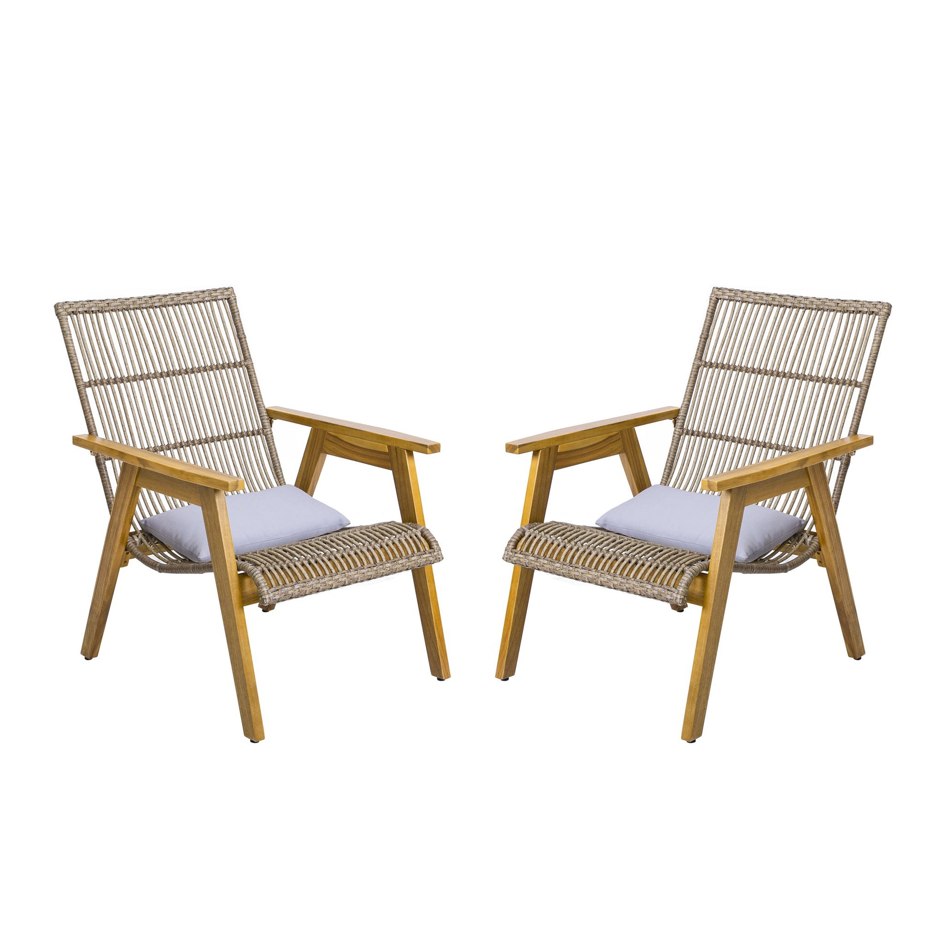 - Material Composition: Crafted with a blend of Acacia wood and wicker, these chairs offer natural warmth and modern durability, perfect for stylish outdoor lounging.