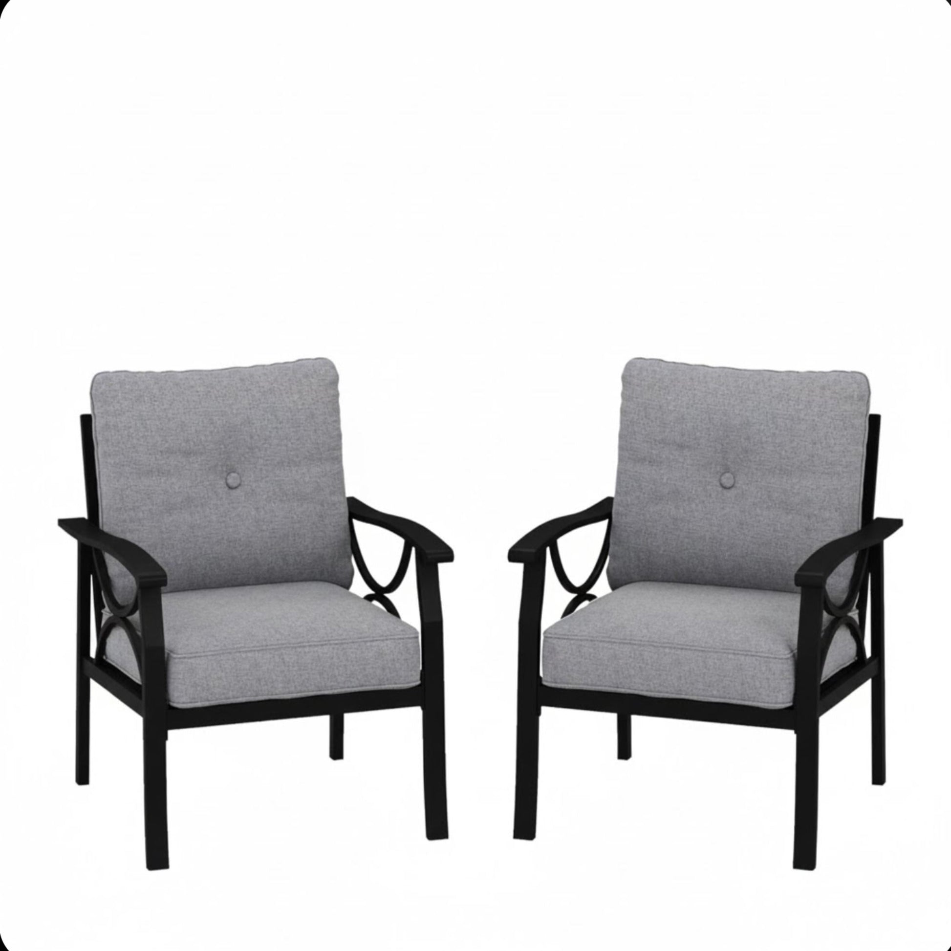 All Weather Armchairs With Cushions, Sculptural Design (Set of 2) - Black / Gray