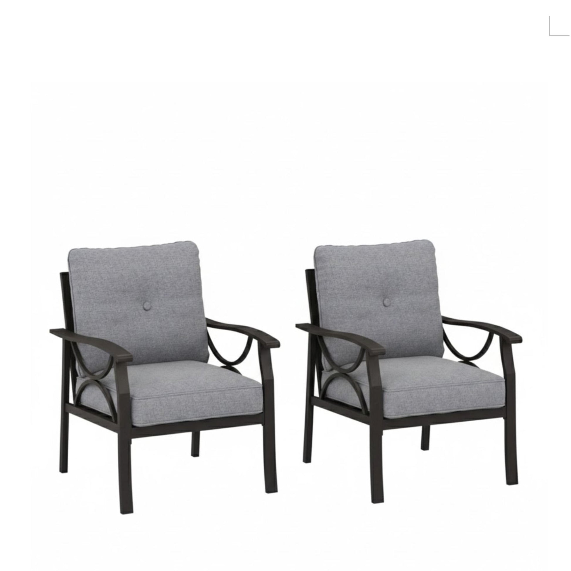 All Weather Armchairs With Cushions, Sculptural Design (Set of 2) - Gray / Khaki
