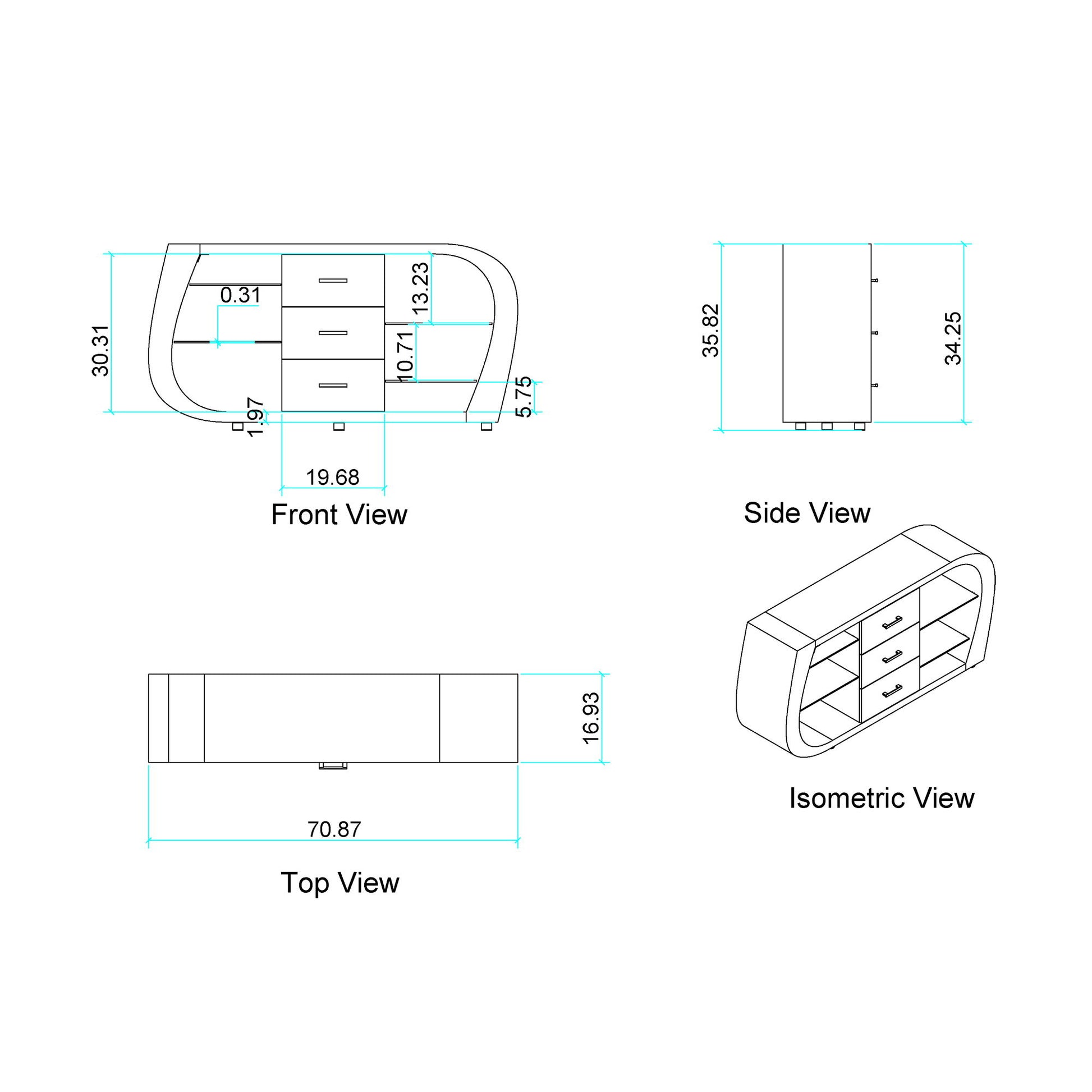 - Ample Storage: Includes a top shelf, bottom shelf, and drawers for versatile storage options.