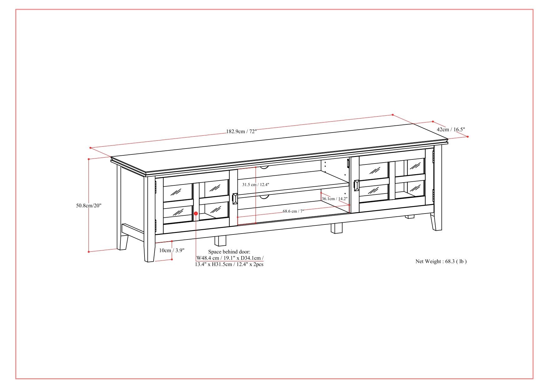 - DIMENSIONS: 16.5" D x 72" W x 20" H