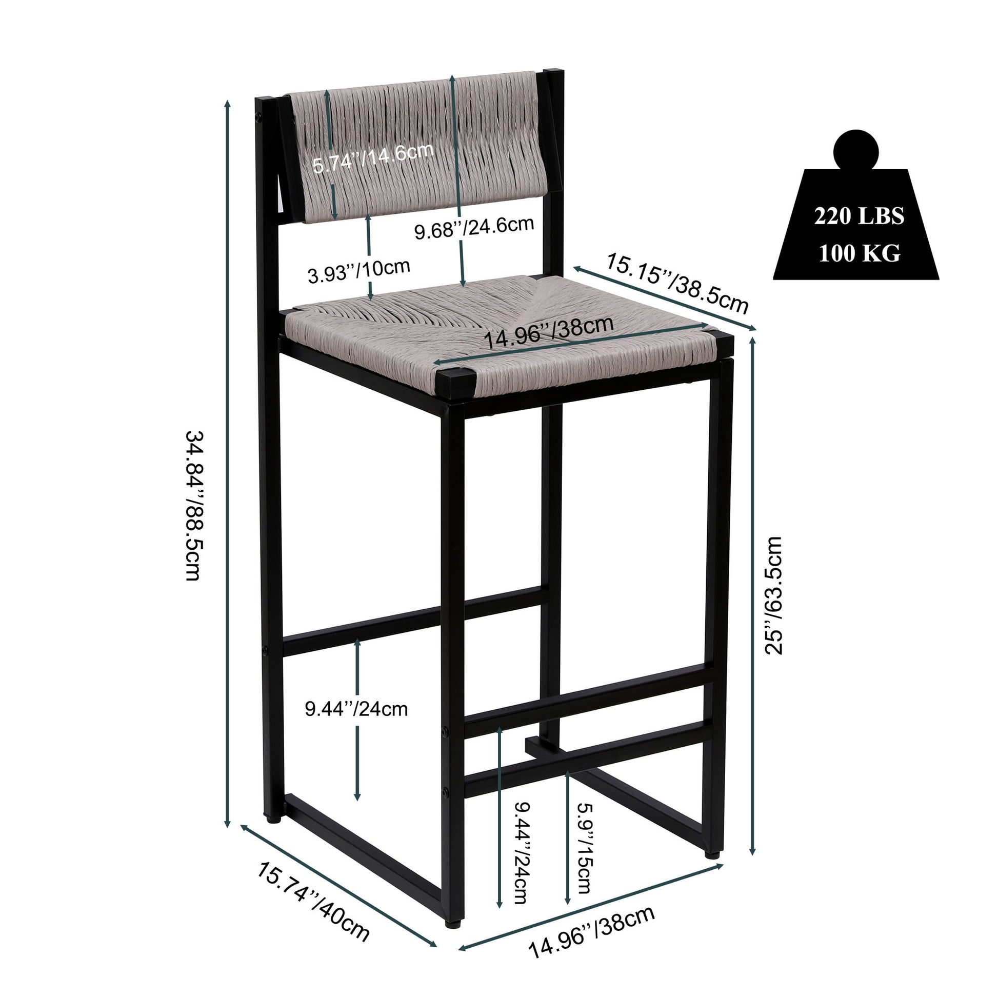 Bar Stools Paper Rope Weave Dining Chairs With Back Hand Weave Stools For Kichen Island, Bar & Counter (Set of 2)