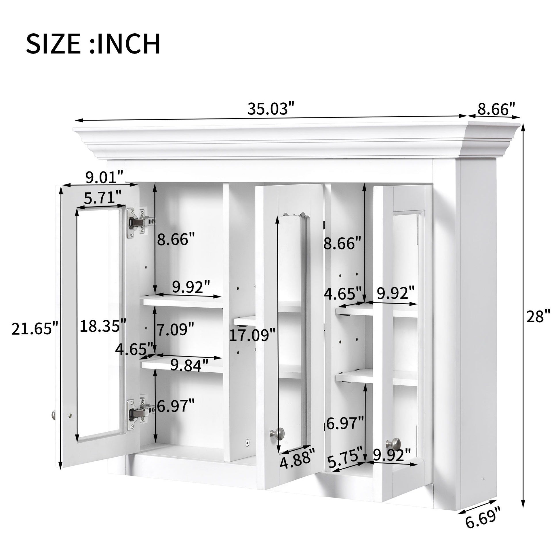 Bathroom Medicine Cabinet With Mirror, 5 Adjustable Closed Shelves, Wall-Mounted - White