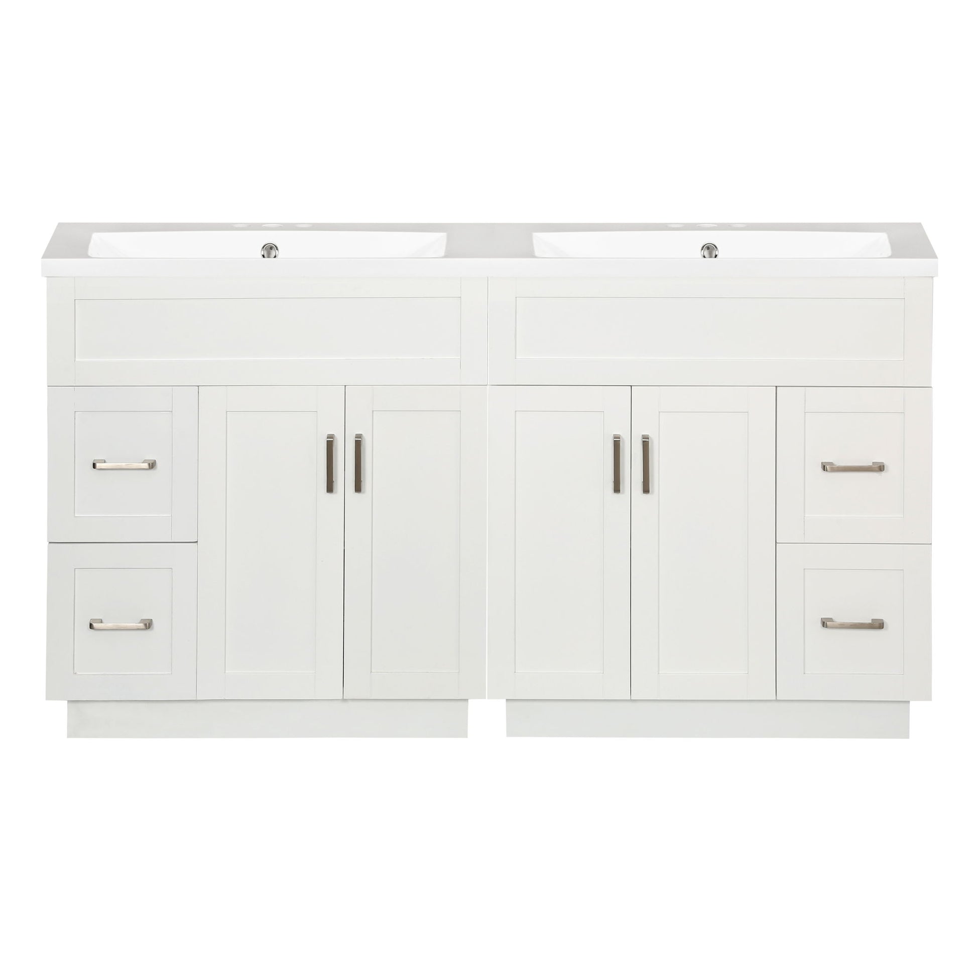 Bathroom Vanity With 4 Cabinet Doors, 4 Drawers, Dual Sinks, Hidden Soft Close Slides And Hinges - White