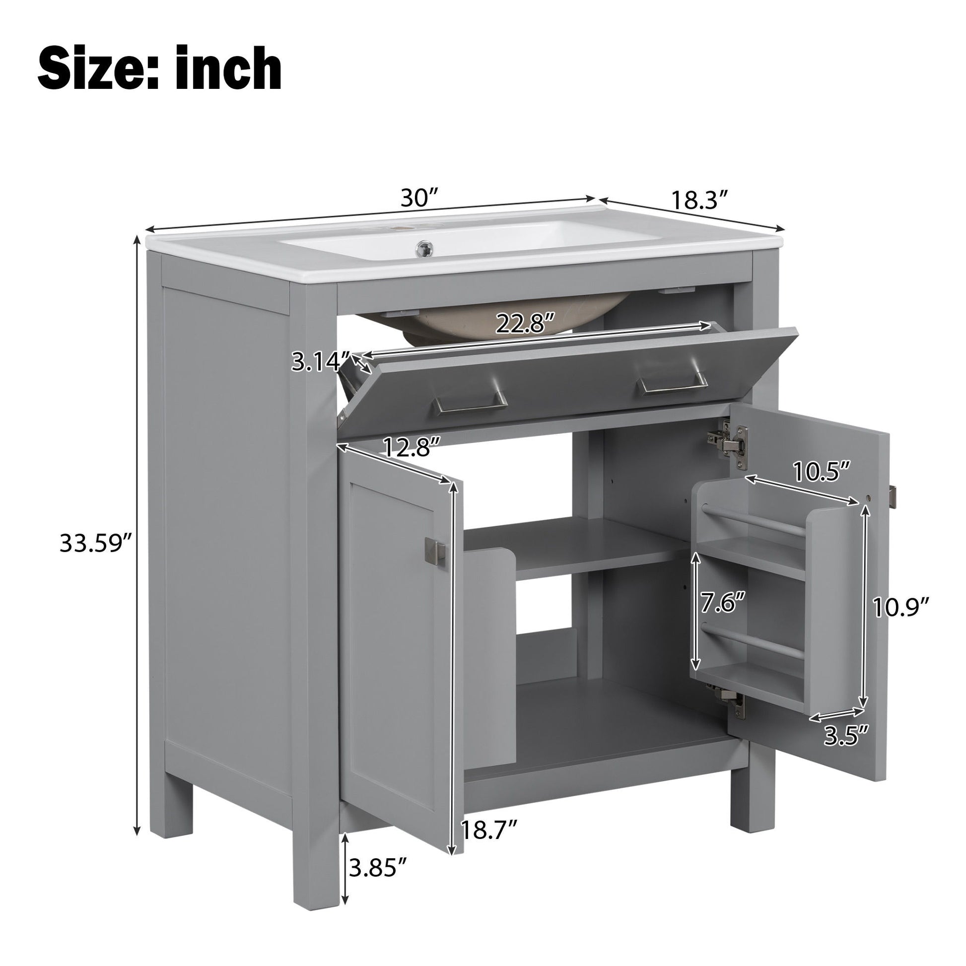 30" Bathroom Vanity With Sink And Soft Close Doors - Gray