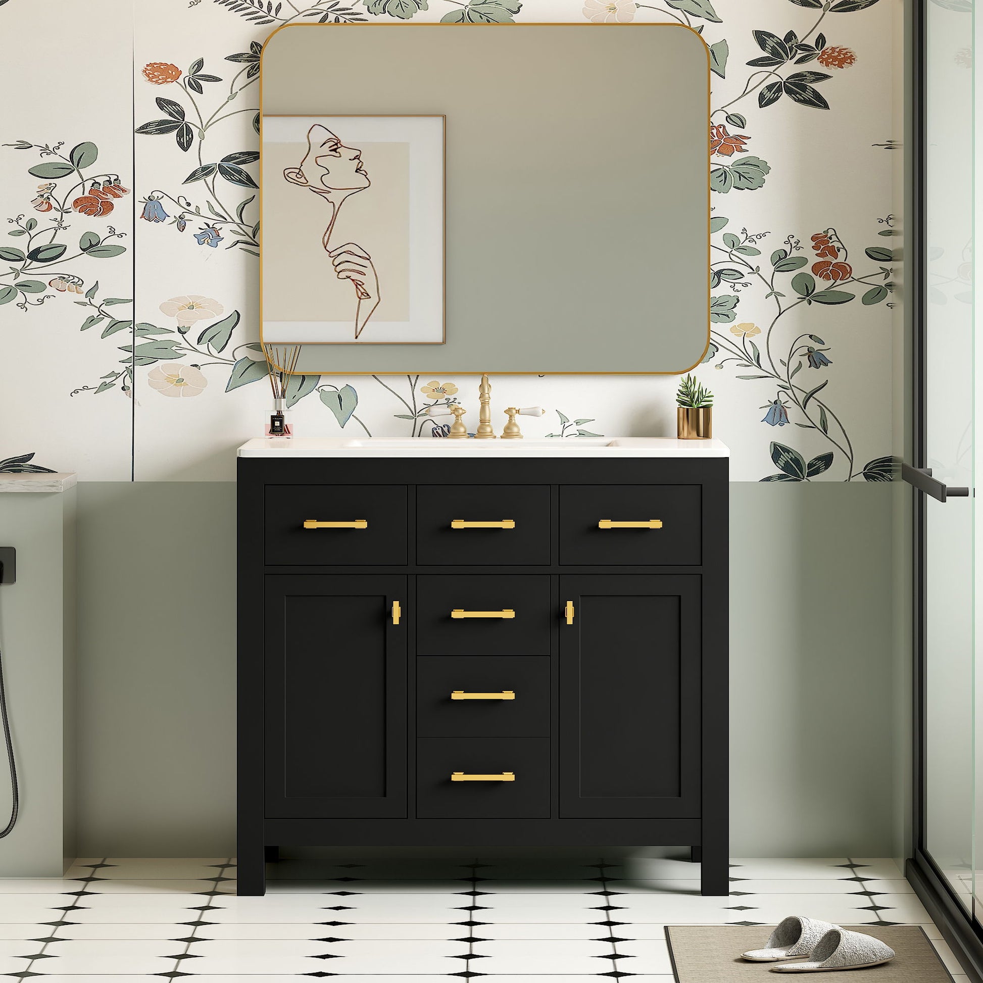 - Ample Storage: Equipped with four drawers and a cabinet, this vanity offers comprehensive storage solutions for daily necessities and larger items, ensuring your bathroom remains organized and clutter-free.