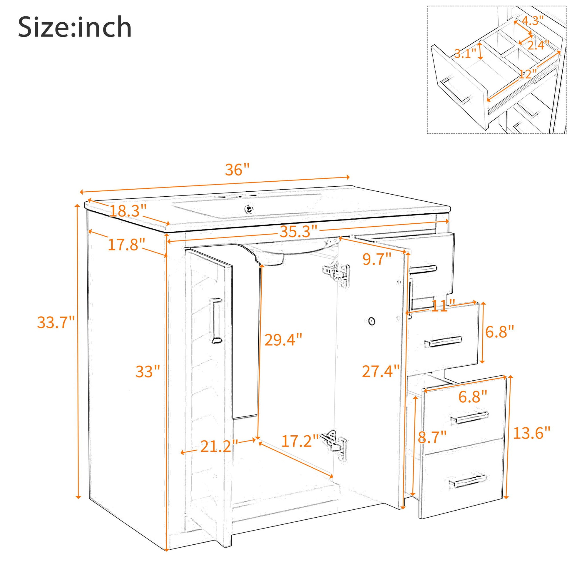 36" Bathroom Vanity With Sink, Storage Cabinet, Freestanding Set With 3 Drawers & Soft Closing Doors - White