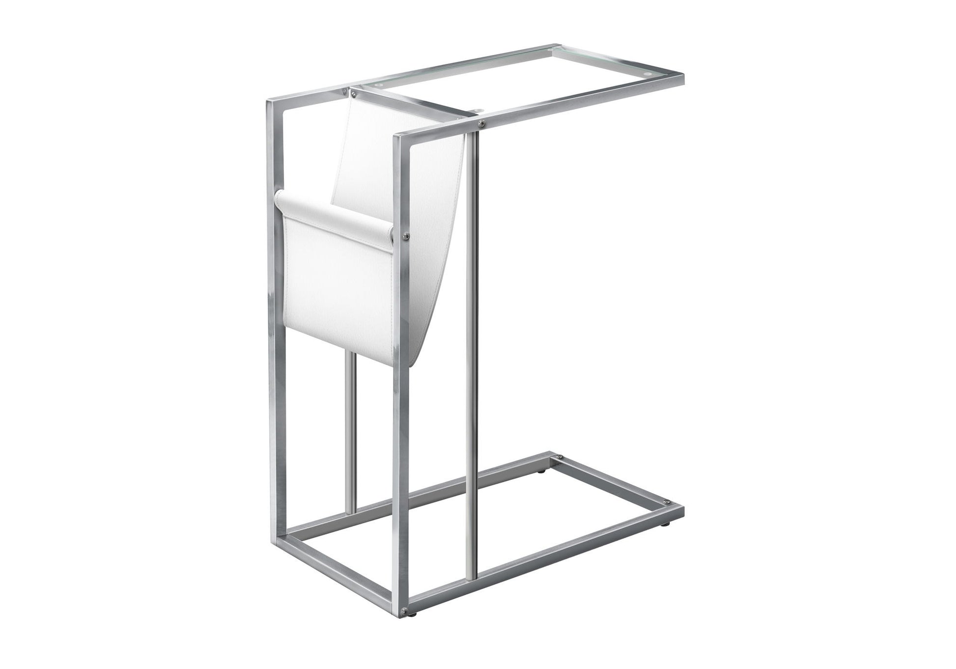 C-Shaped Accent Table Magazine Storage For Living Room - Chrome