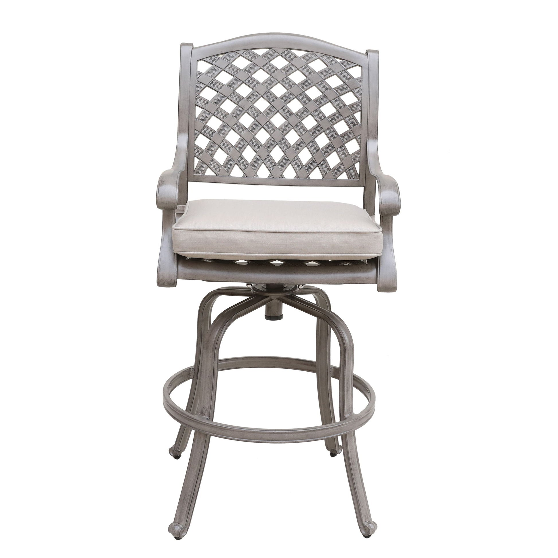 Cast Aluminum Bar Stool With Cushion (Set of 2) - Gray