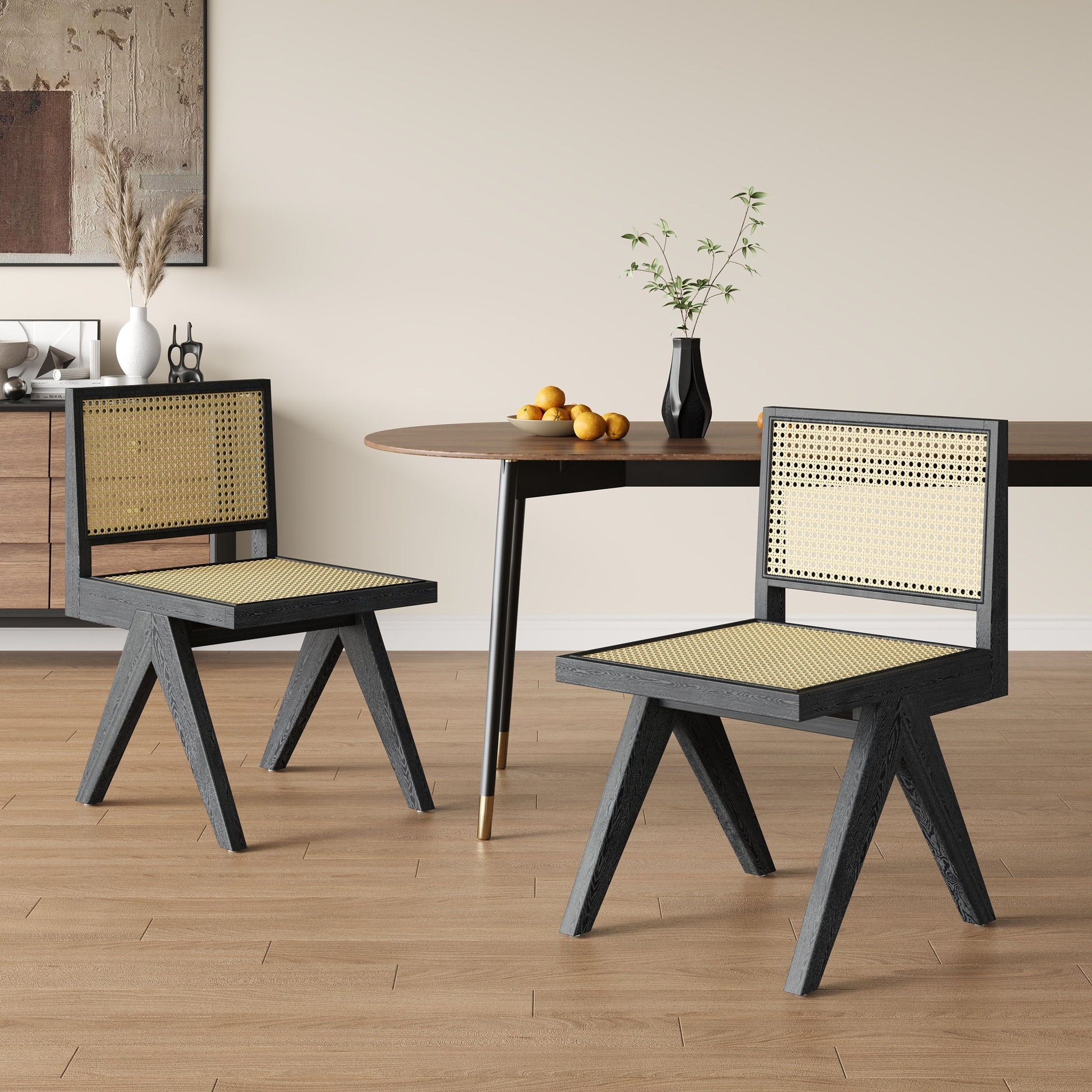 Chandigarh - Dining Room Chairs, Kitchen Chairs Side Chairs (Set of 2) - Black / Natural