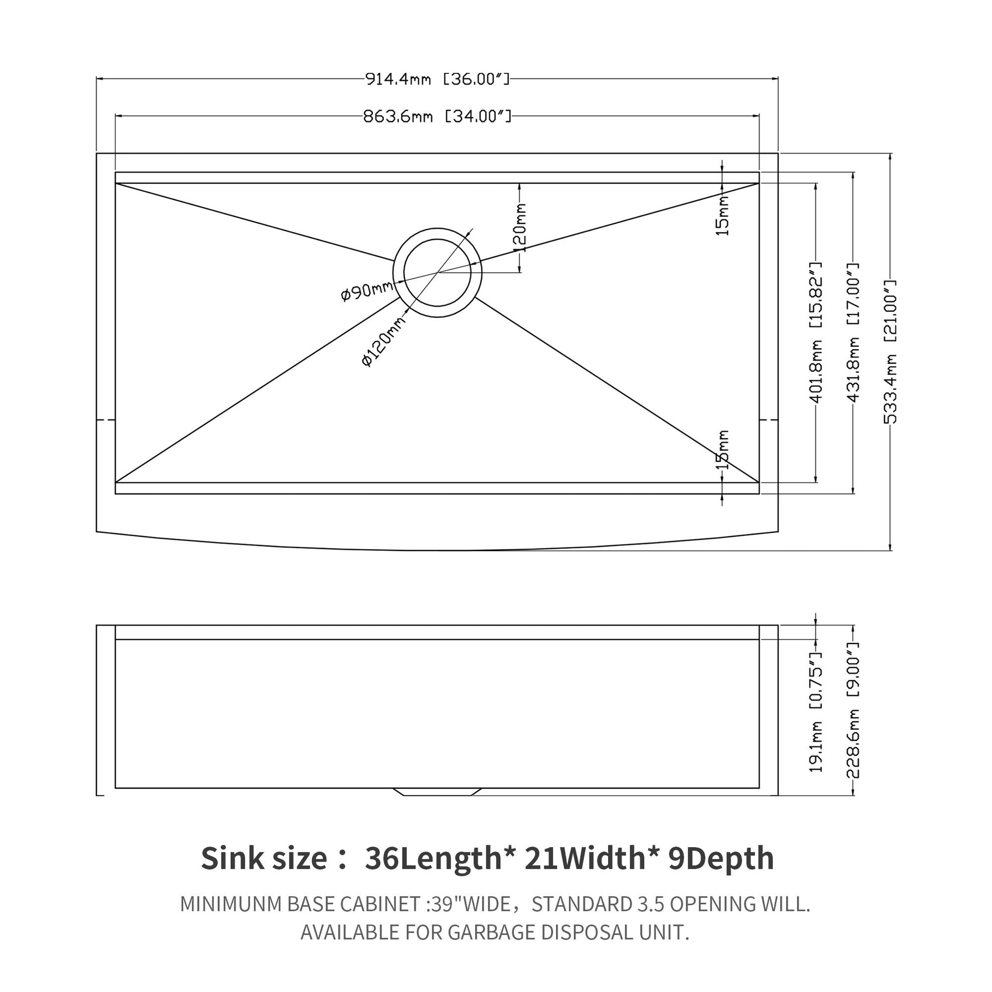 36.0"W x 21.0"D x 9.0"H - 39.6 lb