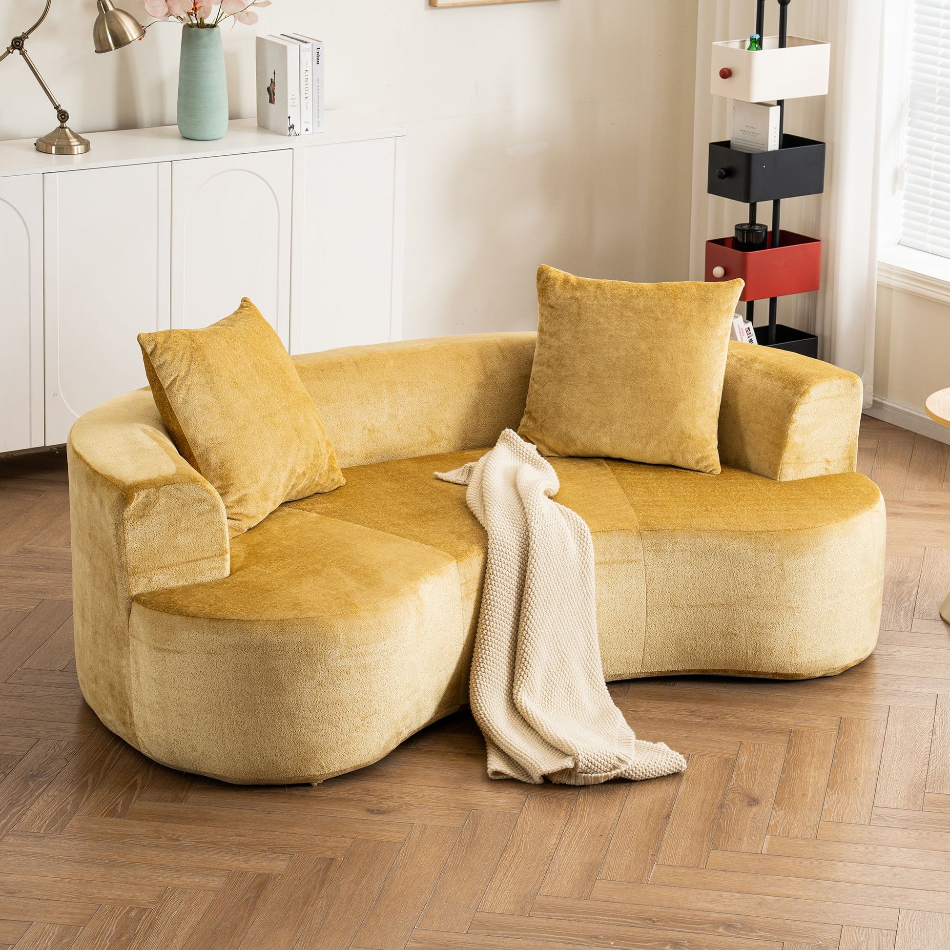 - Modular Space-Saving Design: Designed to sit snugly against walls, this modular sectional sofa maximizes floor space while adding a modern, curved silhouette to your living room setup.