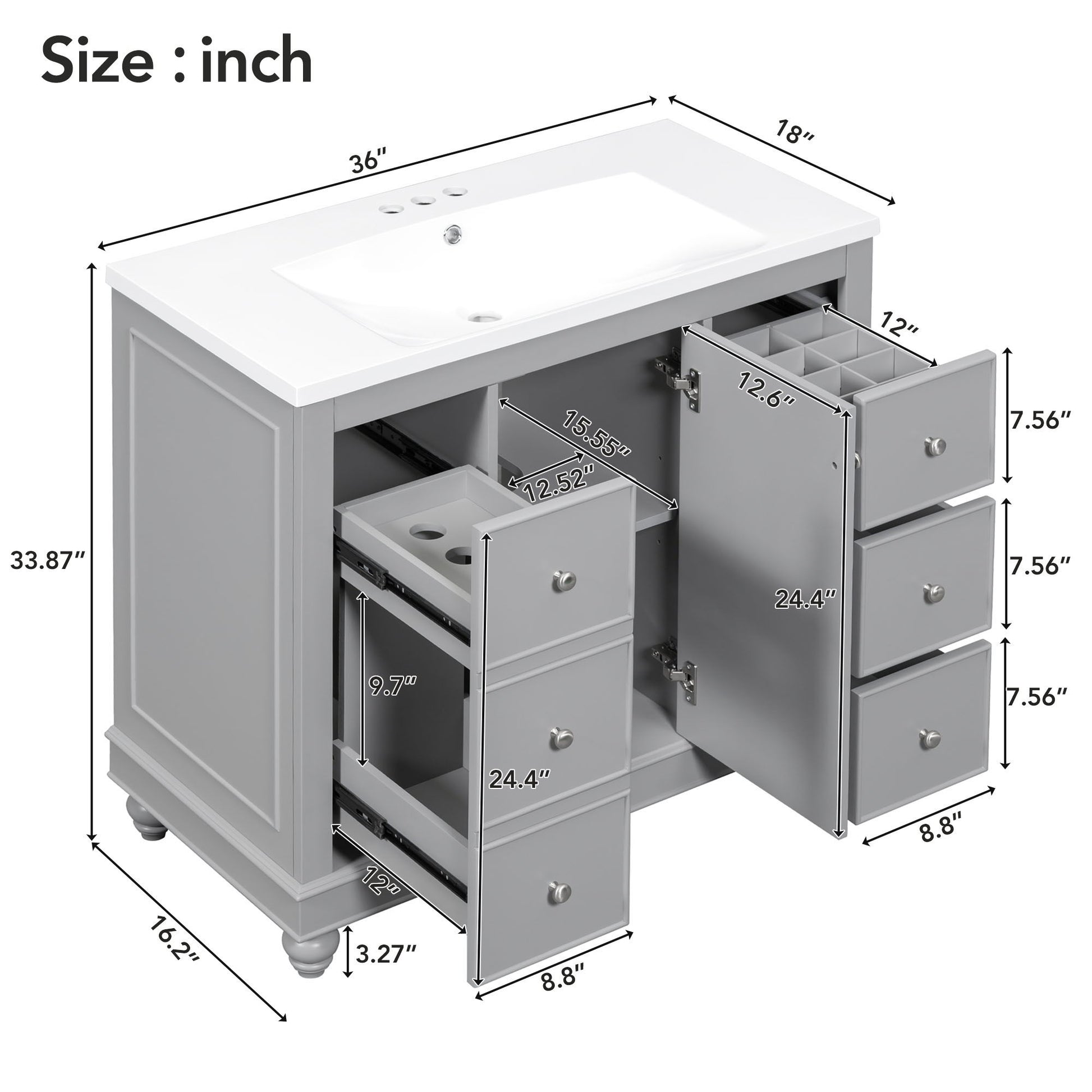 - Modern Sink: Integrated resin sink adds a sleek, modern touch and is easy to clean, complementing any bathroom decor.