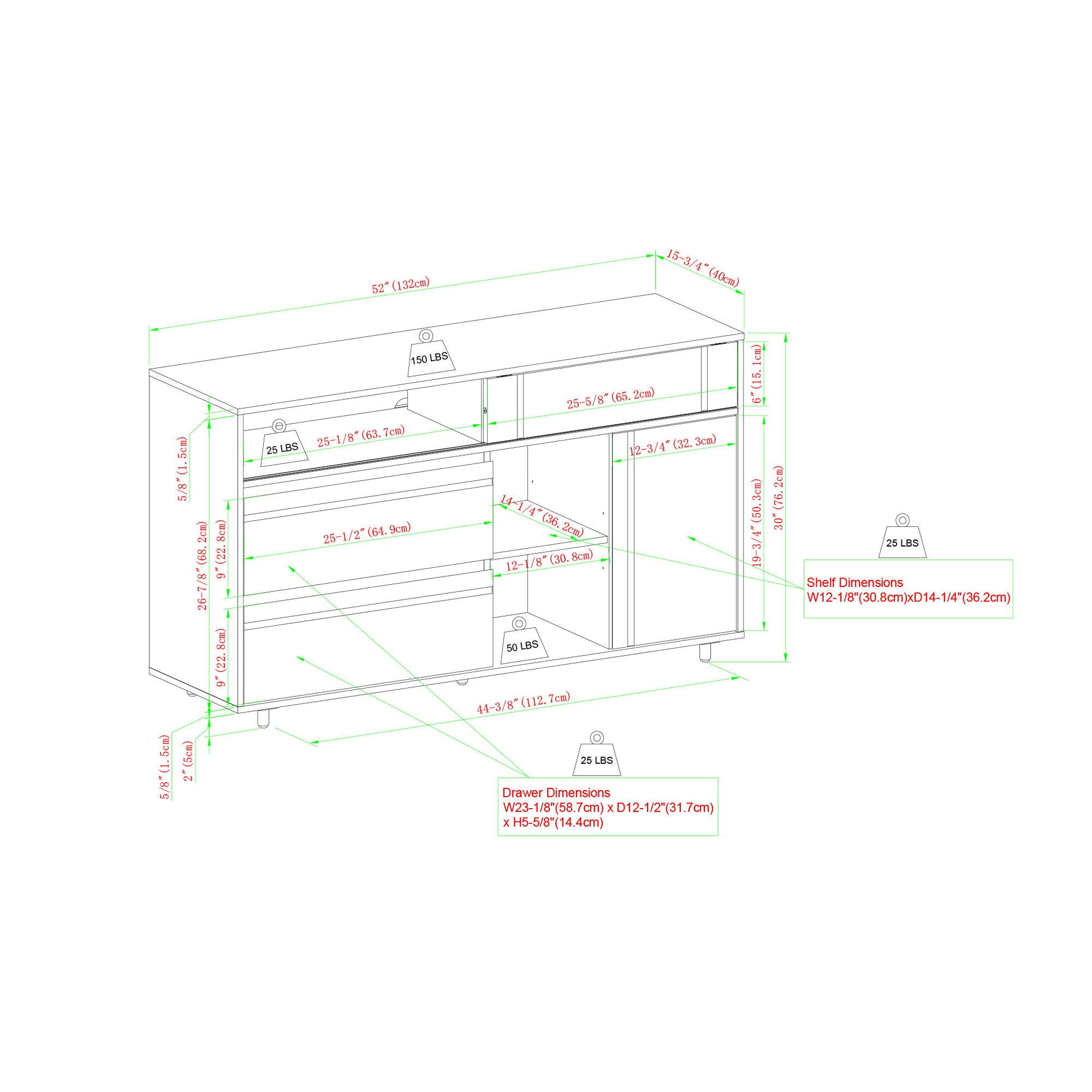 52.0"W x 15.75"D x 30.0"H - 99.0 lb
