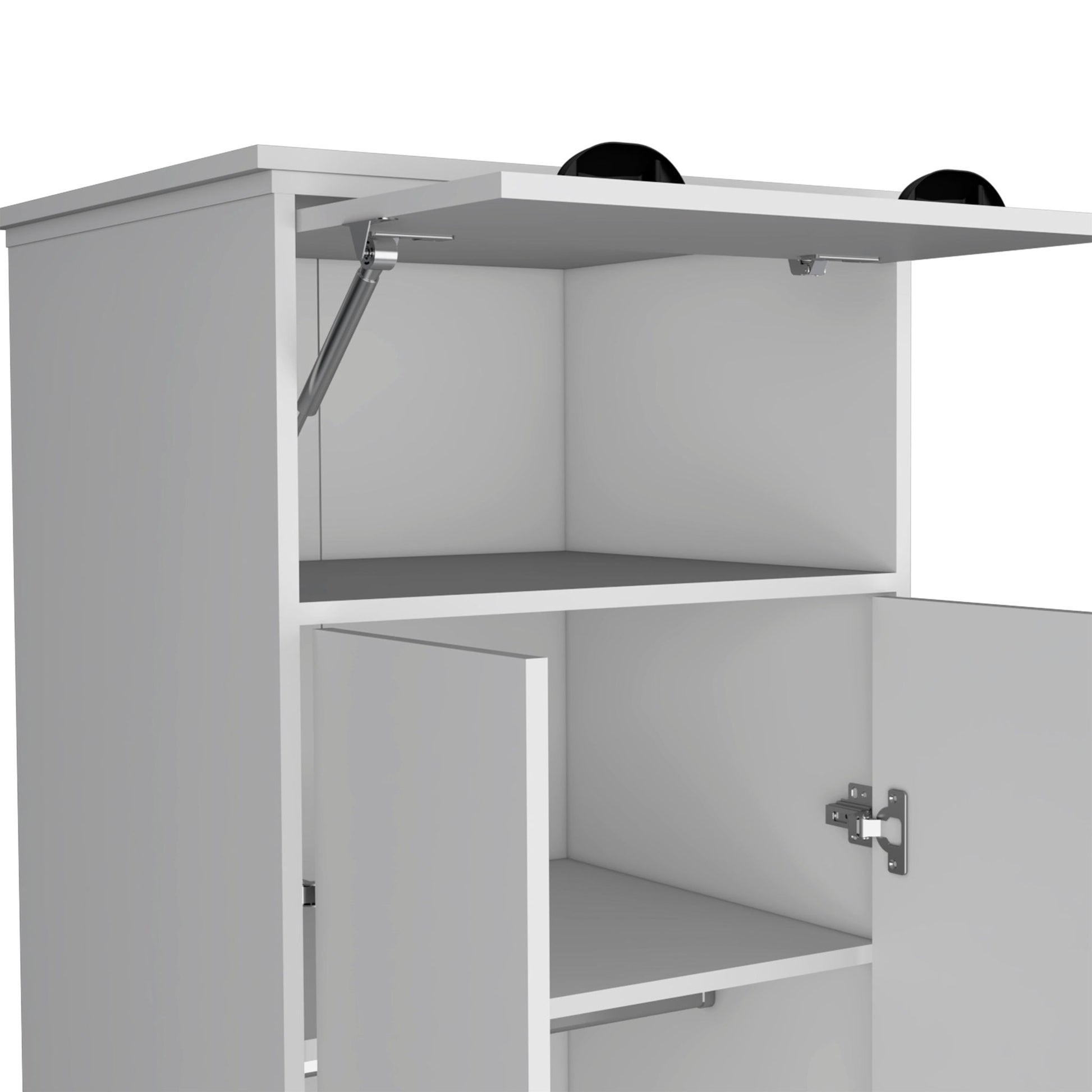 Dresser Closet With Upper Storage Covered With 1 Door, 2 Central Shelves, 1 Tube For Hanging Clothes Covered By 2 Doors, 1 Drawer At The Bottom - White