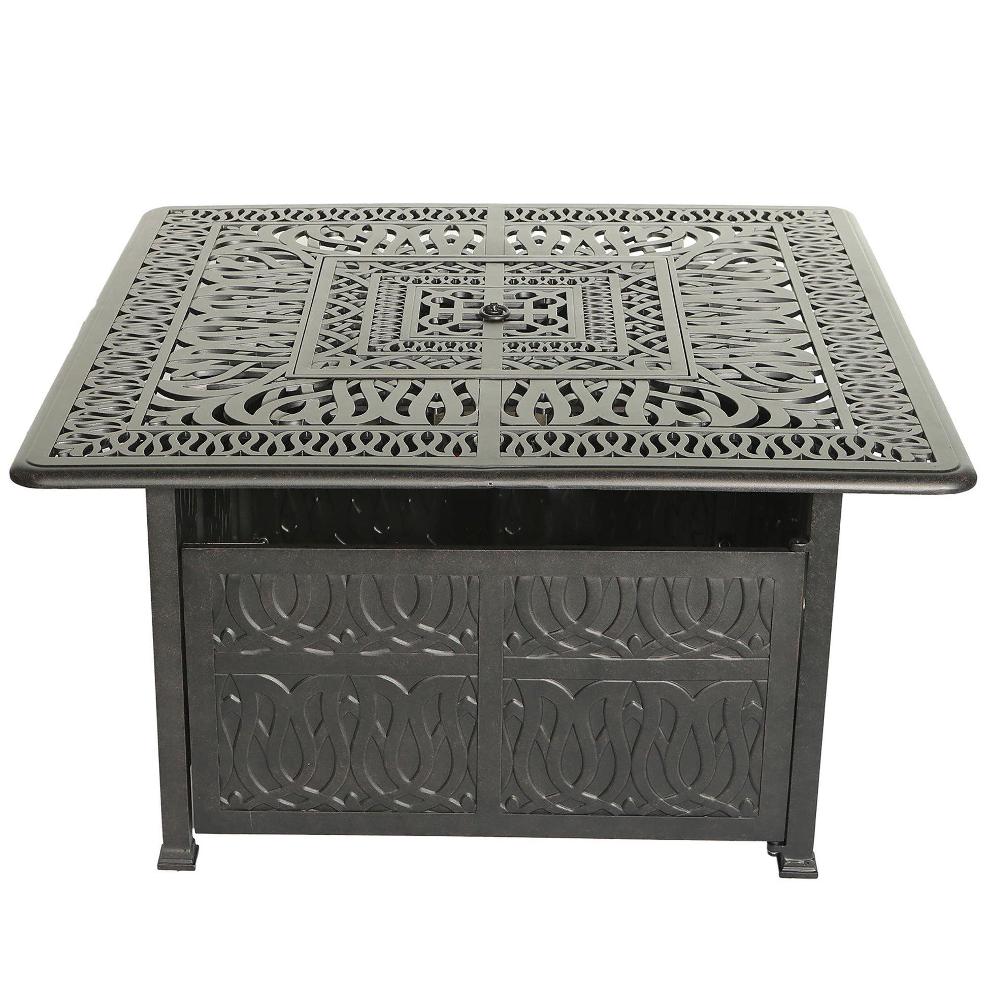 Elegant Cast Aluminum Square Fire Table With Fire Glass And Cover - Antique Bronze