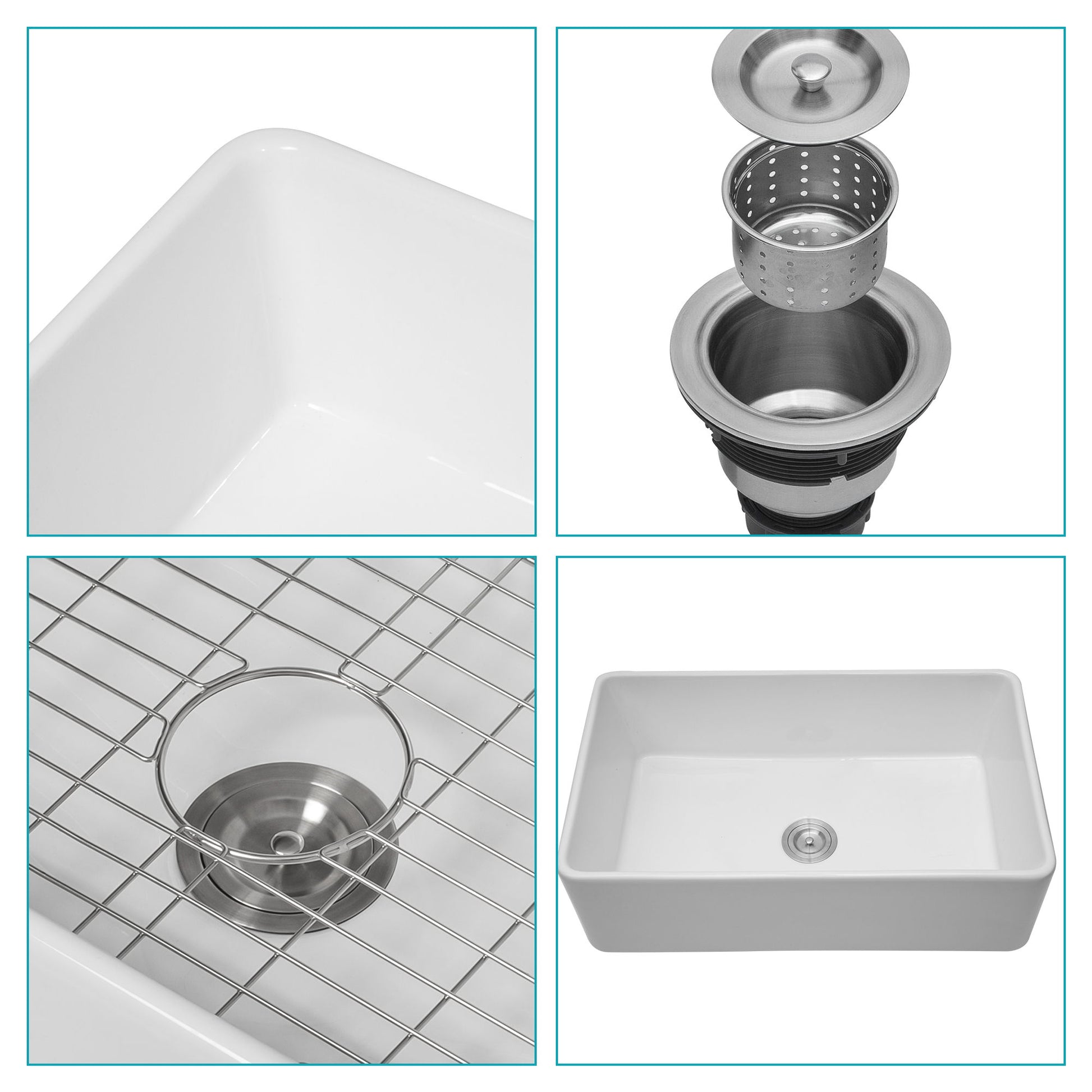 - Complete Package: Includes farmhouse sink, dish grid, and basket strainer.
