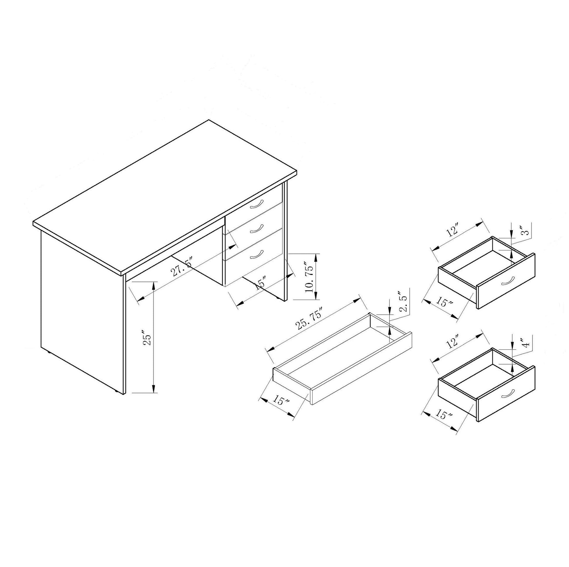 - Drawer Functionality: Features three drawers equipped with pre-assembled metal glides, ensuring smooth operation and convenient storage for office essentials.