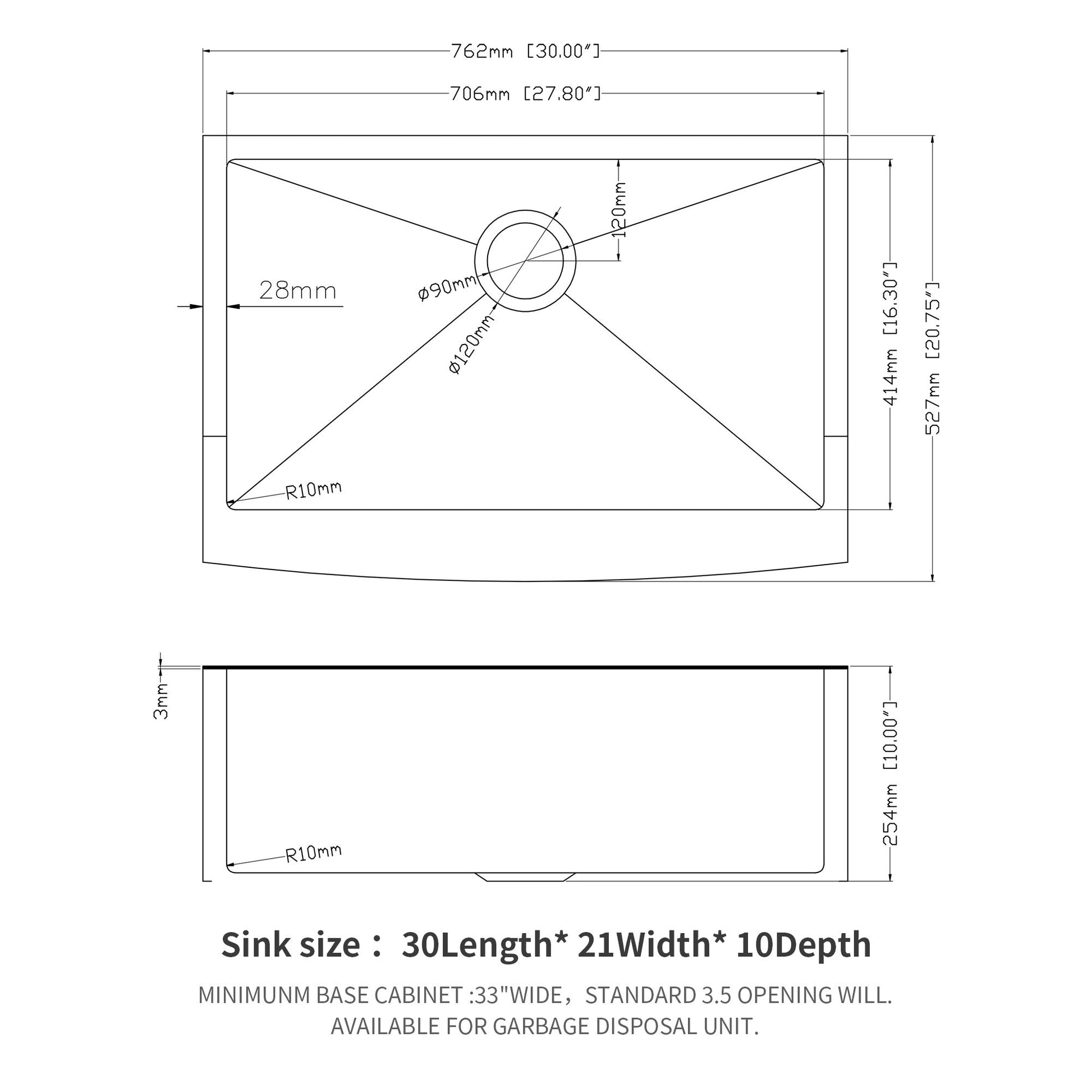 Farmhouse Sink 30" Kitchen Sink Stainless Steel 16 Gauge Apron Front - Gold
