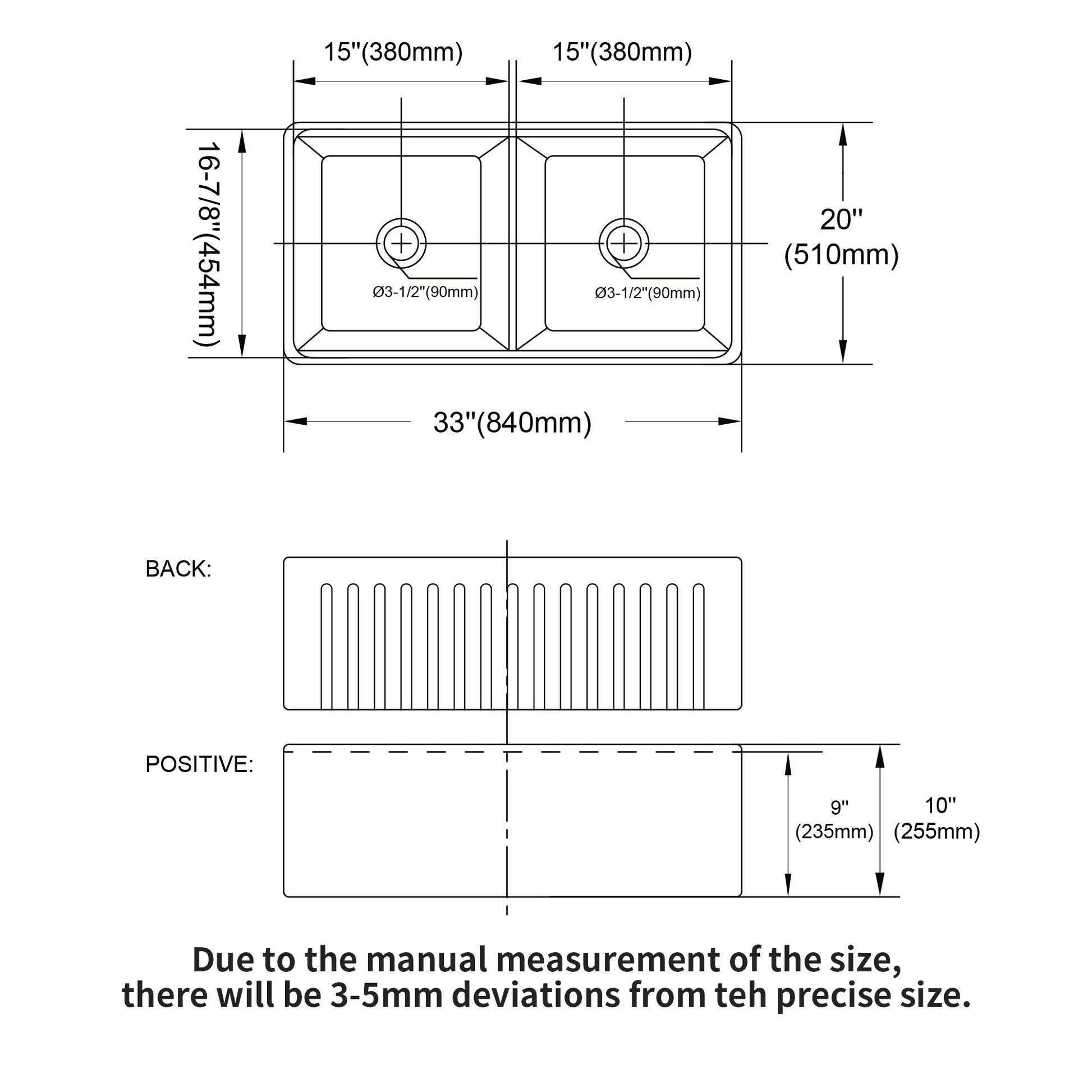Farmhouse Sink Workstation 33" Ceramic Double Bowl Kitchen Sink With Ledges - White