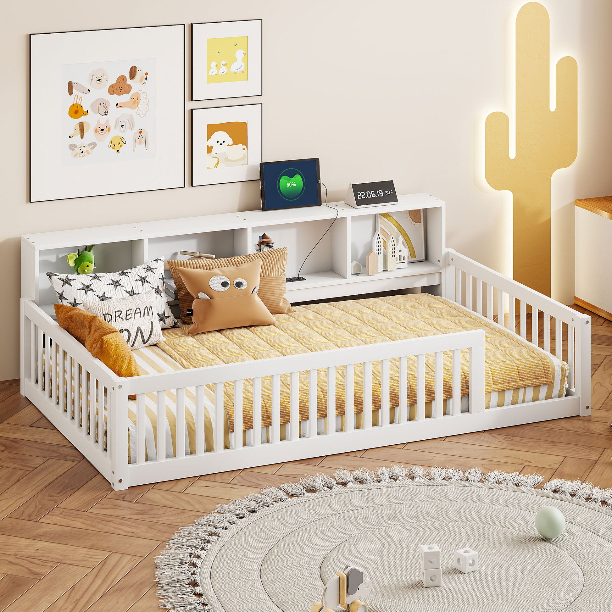 Floor Bed With Storage Cabinets And USB Ports