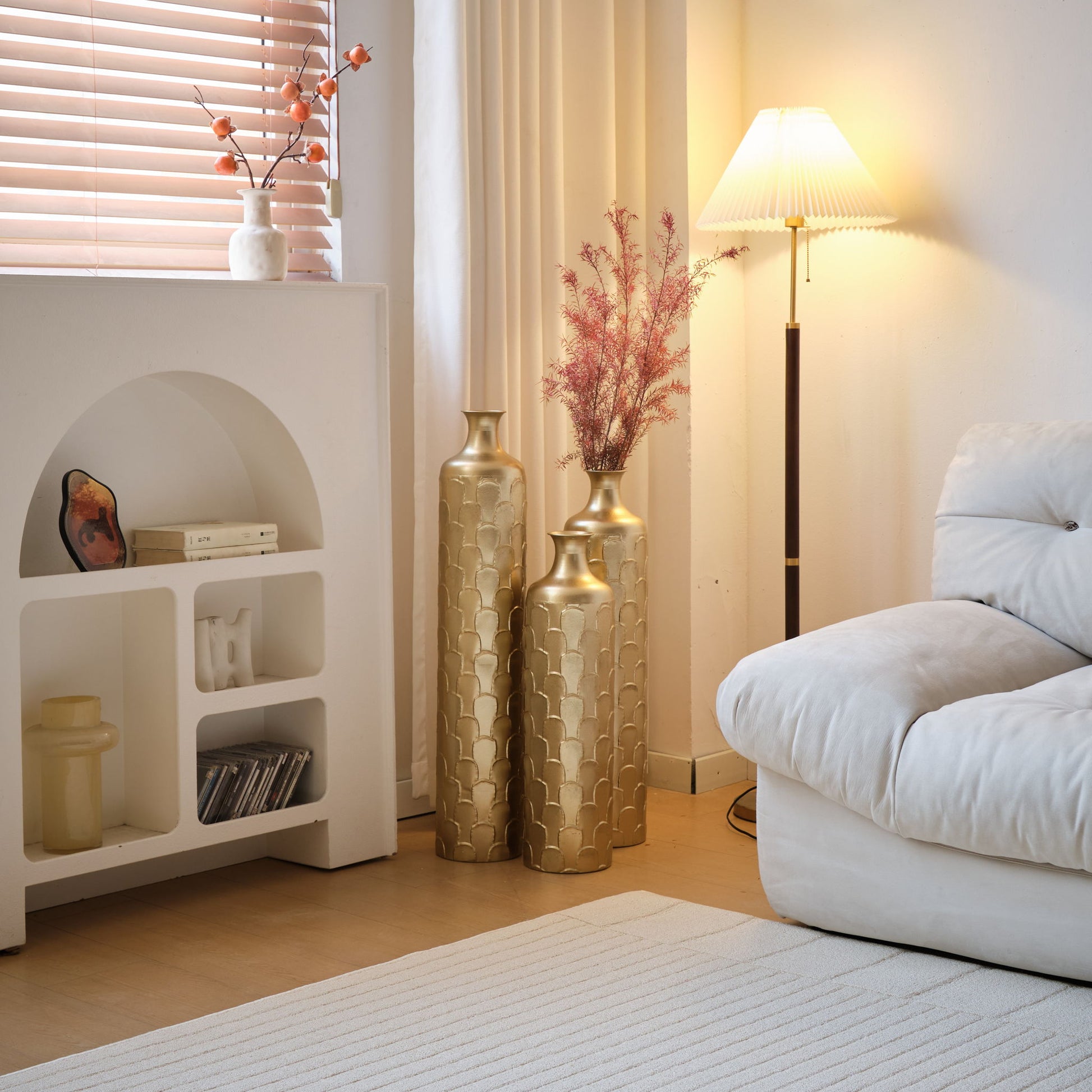Floor Metal Vases Decorated White Metal Vases (Set of 3) Gorgeous Home Decoration Large Glazed Metal Vases - Golden