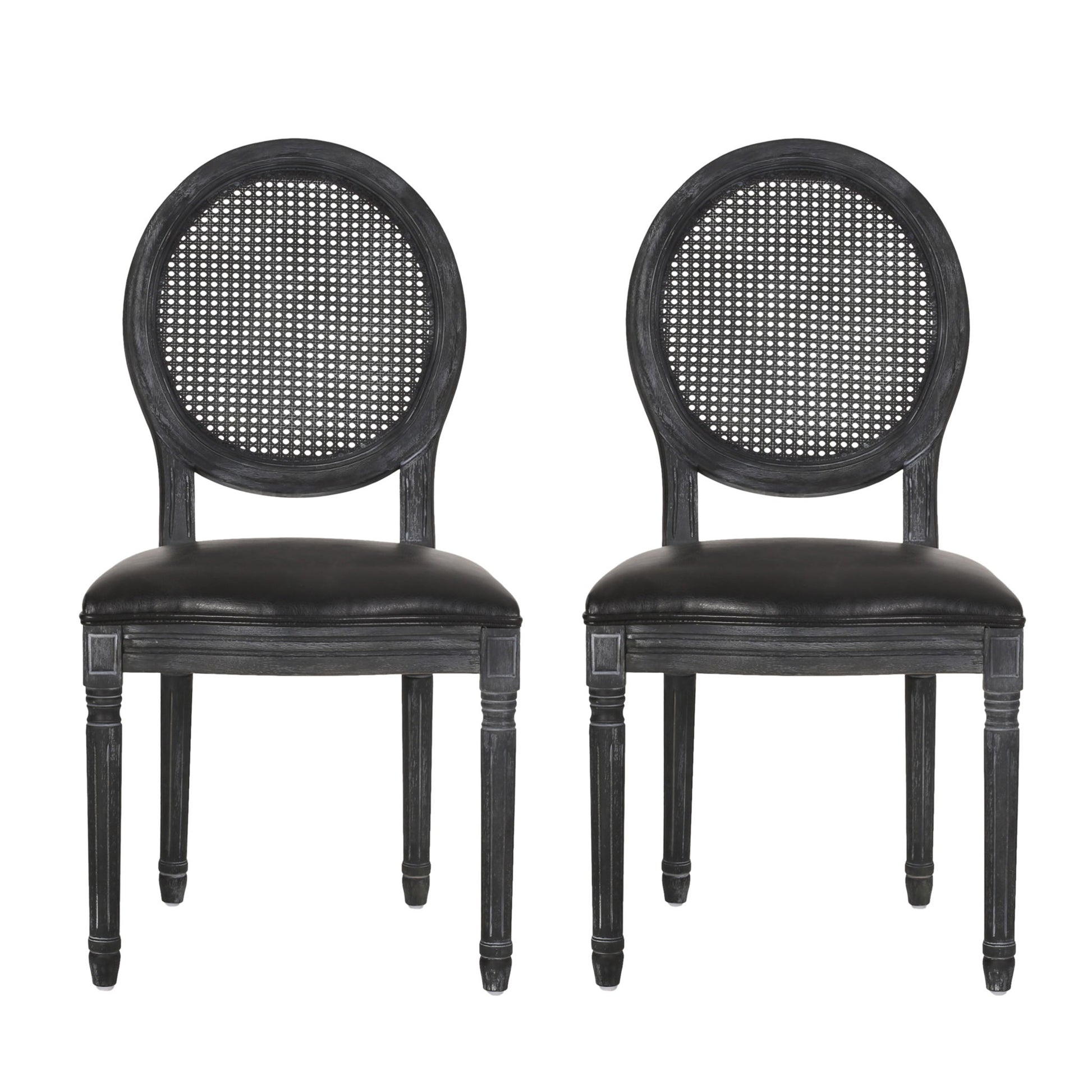 French Country Dining Chair (Set of 2) With Cane Backrest - Black