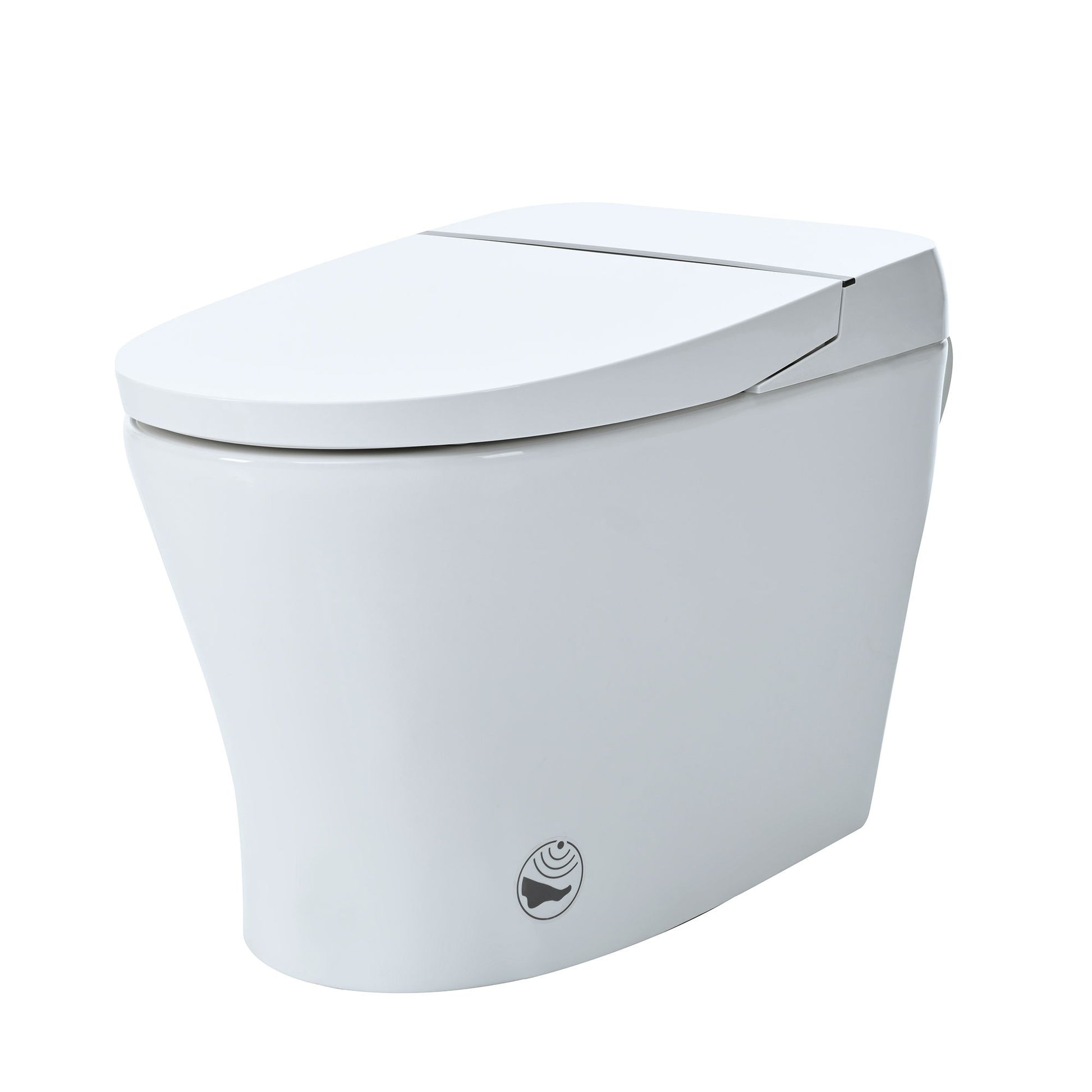 Heated Seat Smart Toilet Without Bidet, Upmarket Compact Dual Flush Toilet 1 / 1.28 Gpf, Tank Less Toilet With Adjustable Temp Heated Seat, Foot Sensor Flush - White Night Light, Knob Control, Power Out