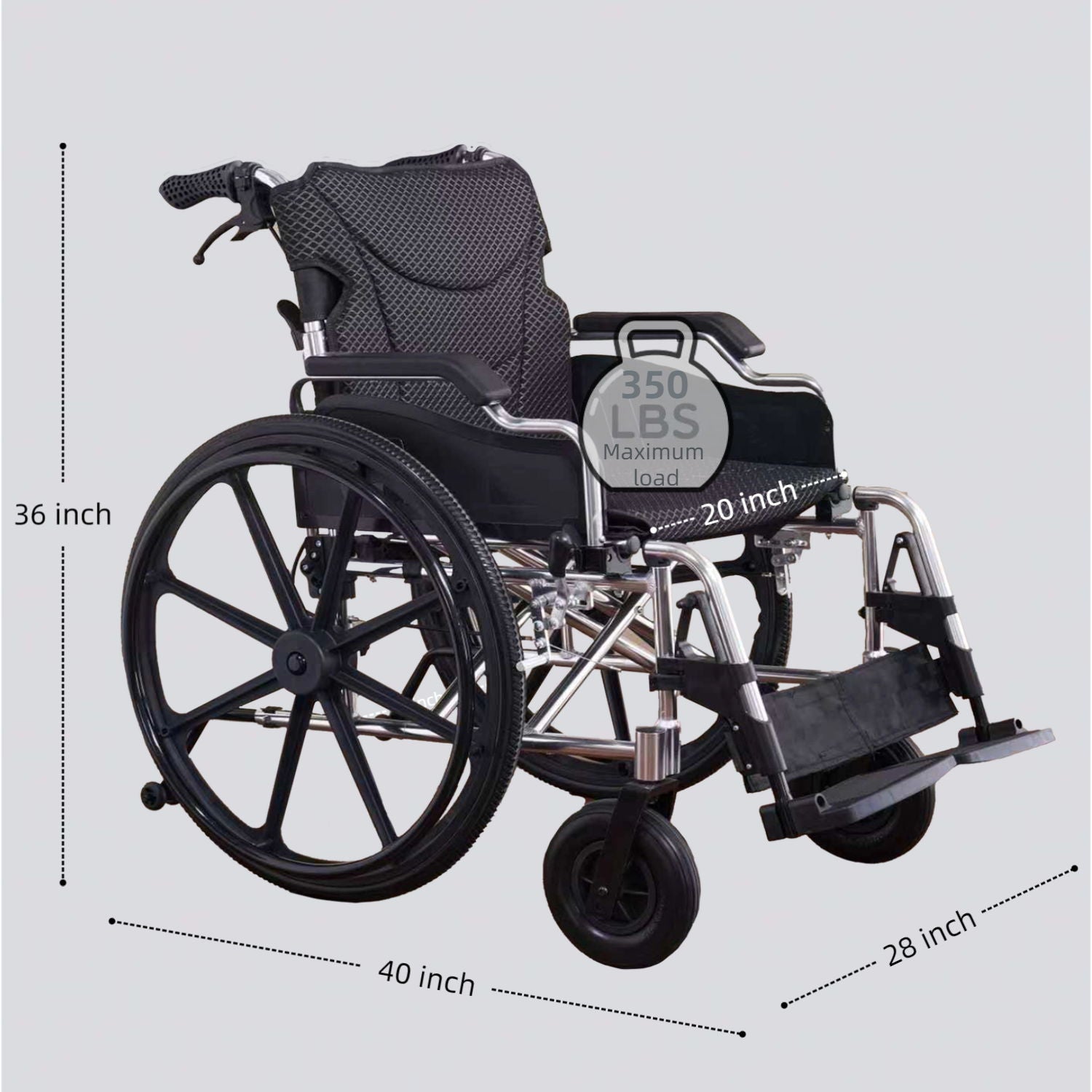 - Experience Ultimate Comfort and Safety : Our heavy-duty transport wheelchair, featuring double x force support,double brakes.Perfect for elderly,disabled,or post-surgery recovery,this bariatric transport chair supports up to 350 lbs with a 20"wide seat.