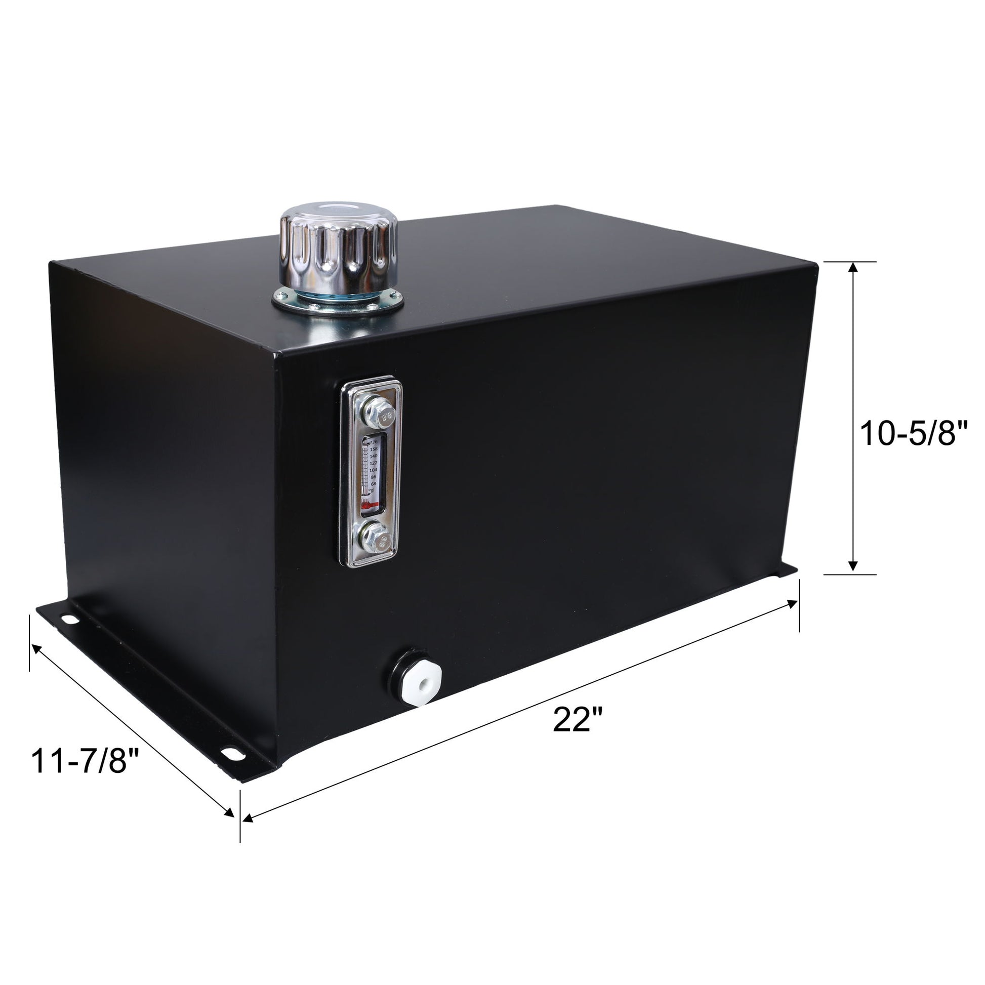 Heavy Duty Hydraulic Fluid Tank 10 Gal Steel Reservoir With Strainer, Gauge & Breather Cap For Tractors & Trucks - Black