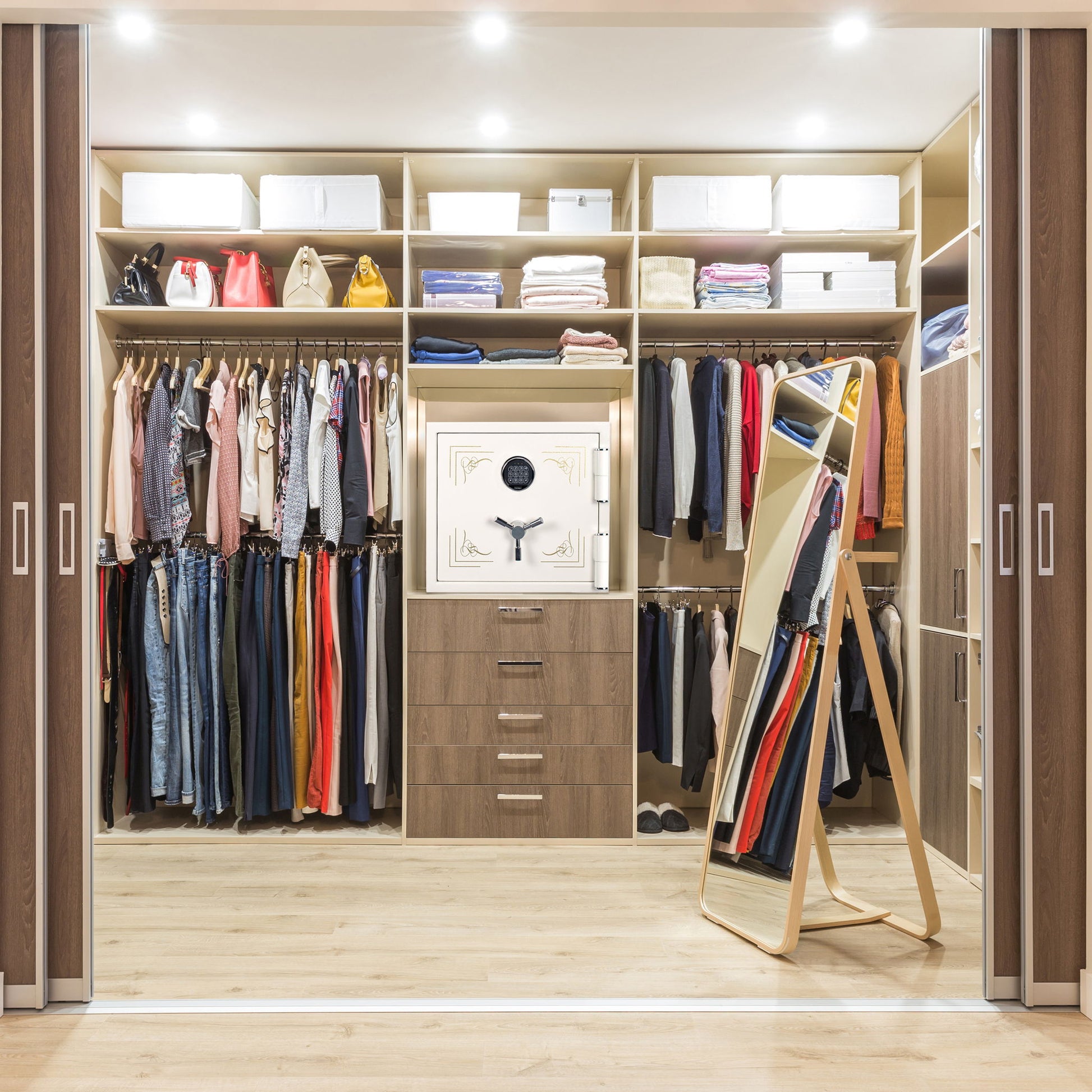 - Complete Jewelry Storage - Equipped with a suede-lined jewelry drawer, removable shelf, motion sensor LED light, and a carpeted interior, this safe provides secure and comprehensive storage for your valuables.
