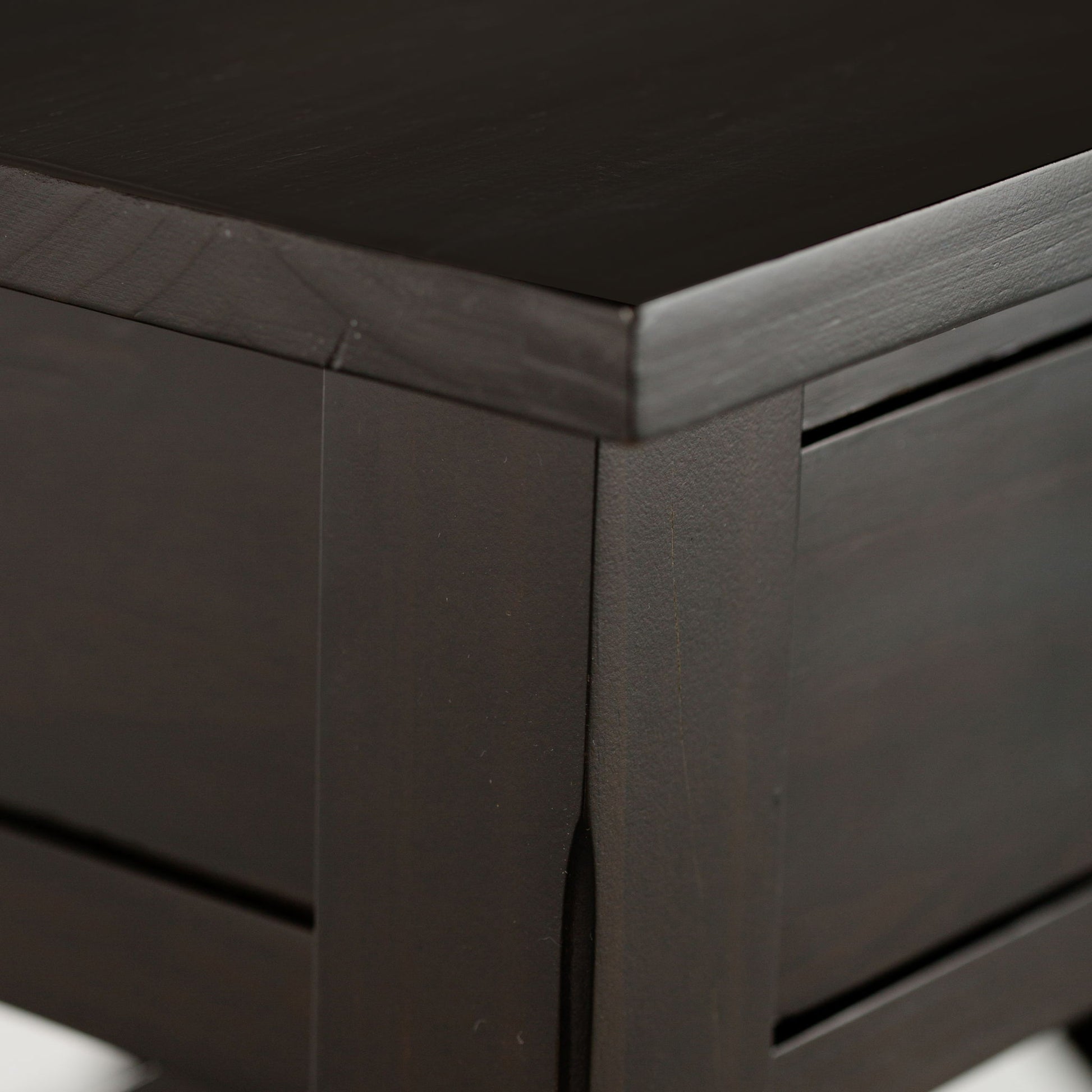 - Features one large drawer with metal drawer glides and an open bottom shelf providing ample storage space.