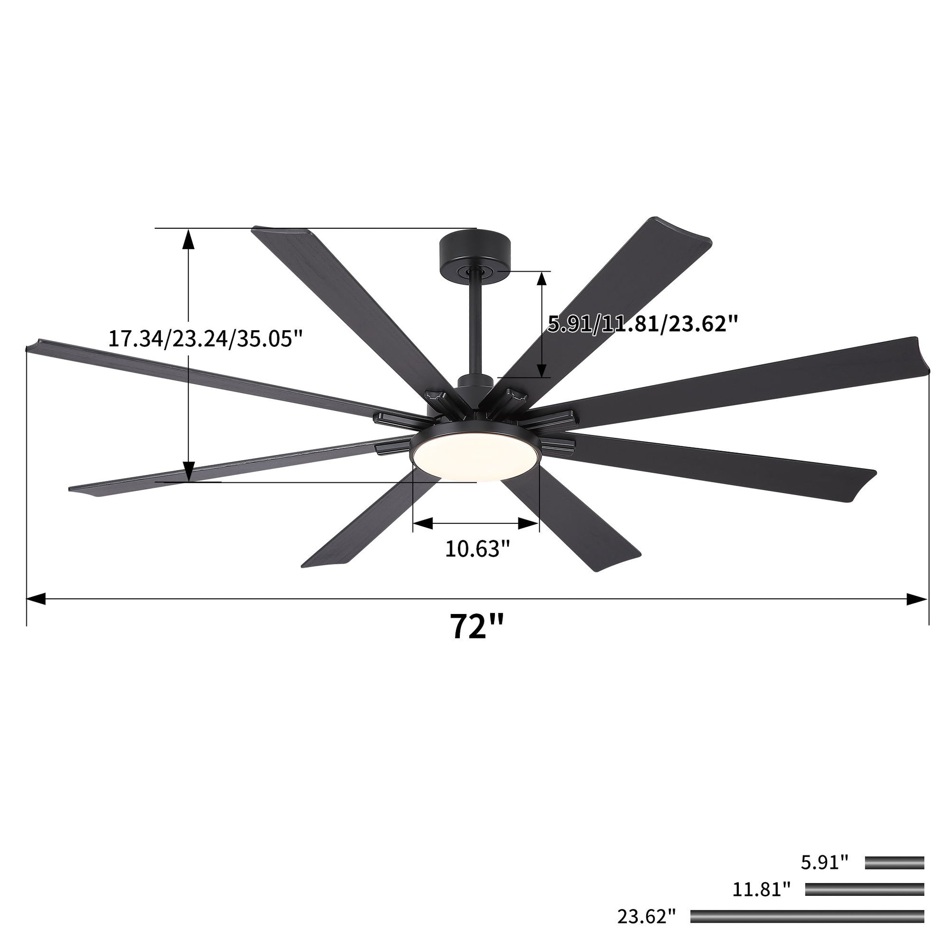 Large Ceiling Fan With Dimmable LED Light, 8 Blades Remote Control, Reversible DC Motor For Living Room - Black