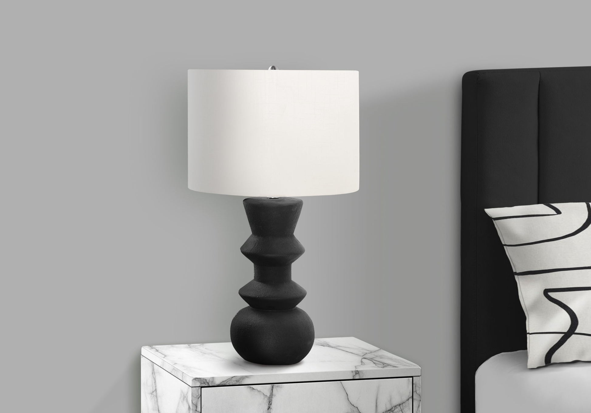 - Stylish Design: This 26" table lamp features a unique geometric base with a chic ceramic textured finish, adding contemporary flair to any room.