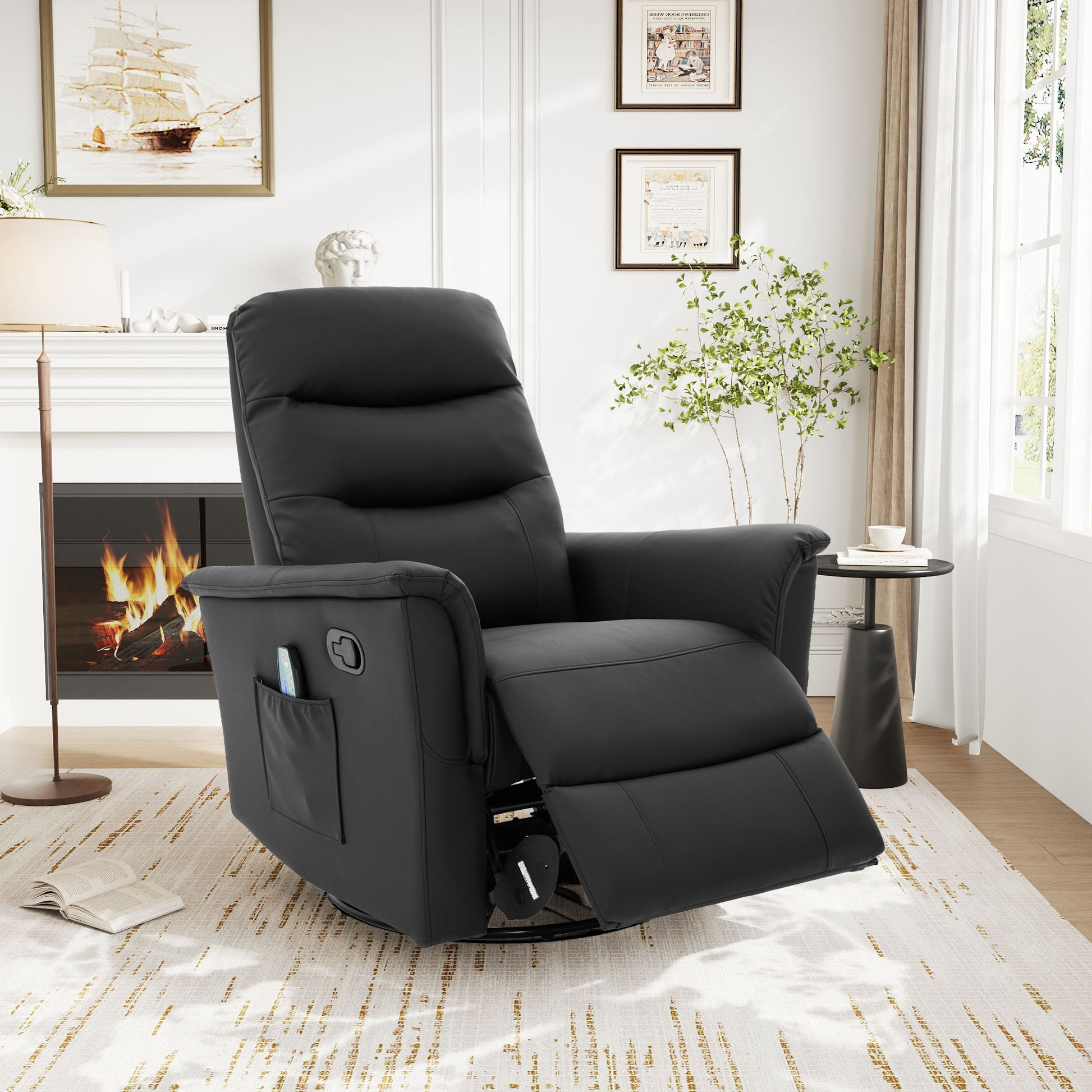 Manual Recliner Chair With 8 Point Massage And Swivel Function For Living Room - Black