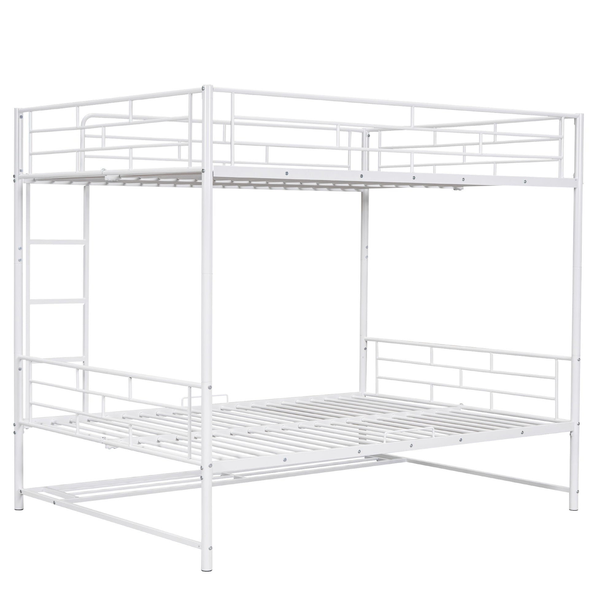 Full Over Full Bunk Bed With Shelf And Guardrails - White
