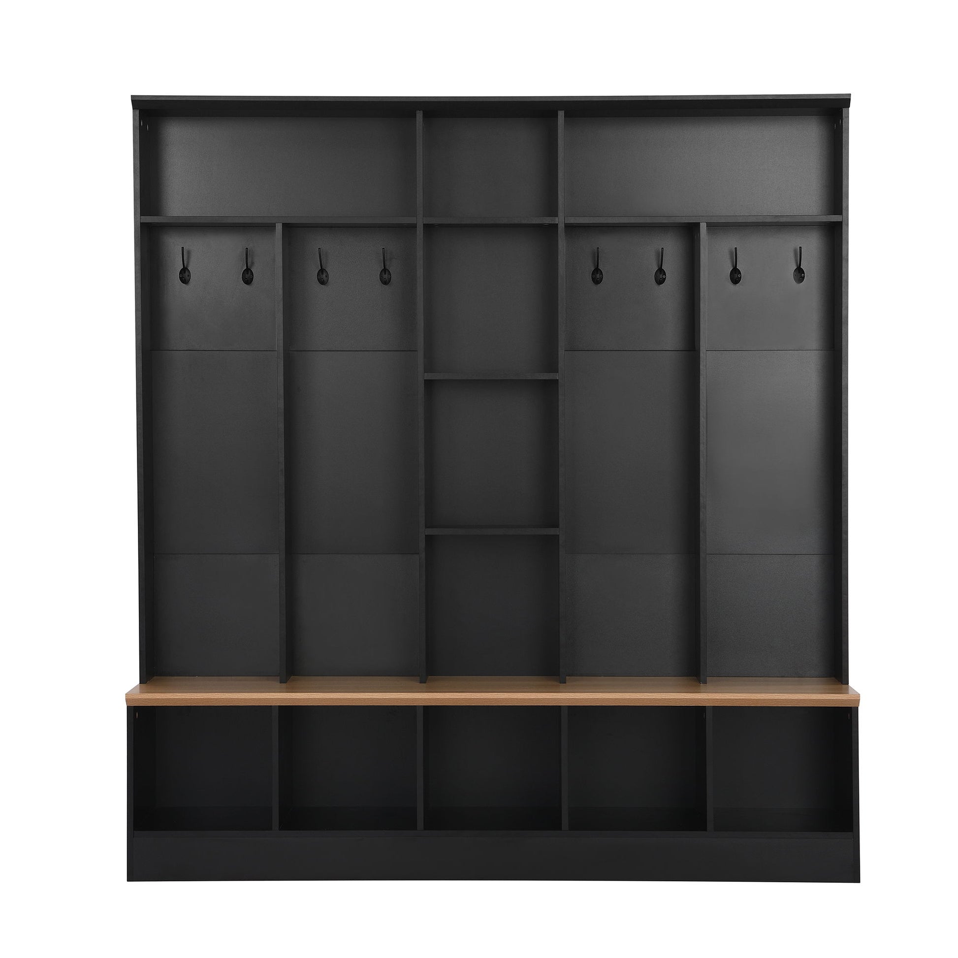 Wide Design Hall Tree With Storage Bench, Minimalist Shoe Cabinet With Cube Storage & Shelves, Multifunctional Coat Rack With 8 Hooks For Entryways, Mudroom - Black