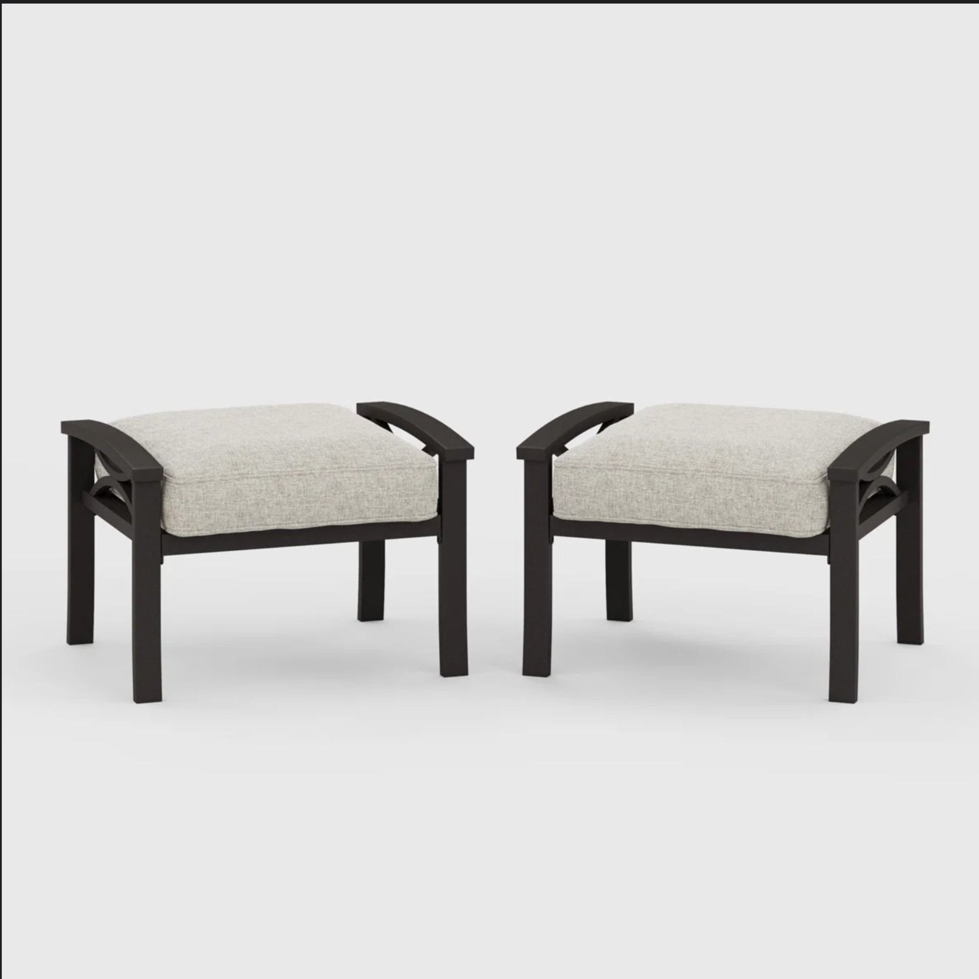 All Weather Ottomans With Cushions (Set of 2) - Black / Gray