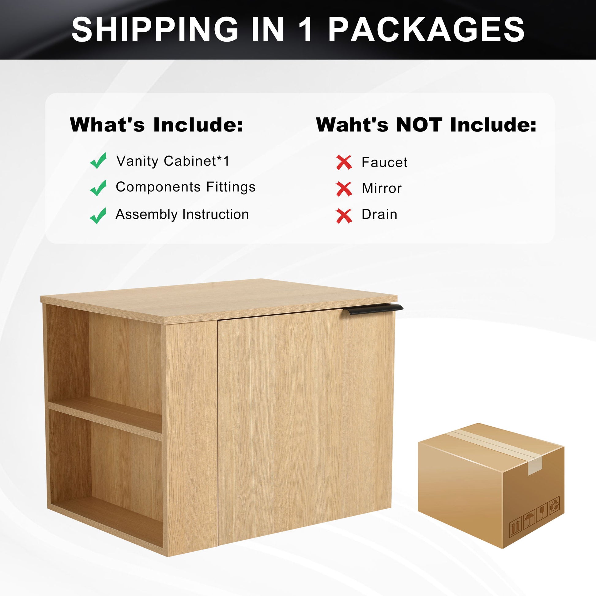 Modern 24" Bathroom Vanity, Suitable For Small Bathroom Spaces - White Oak