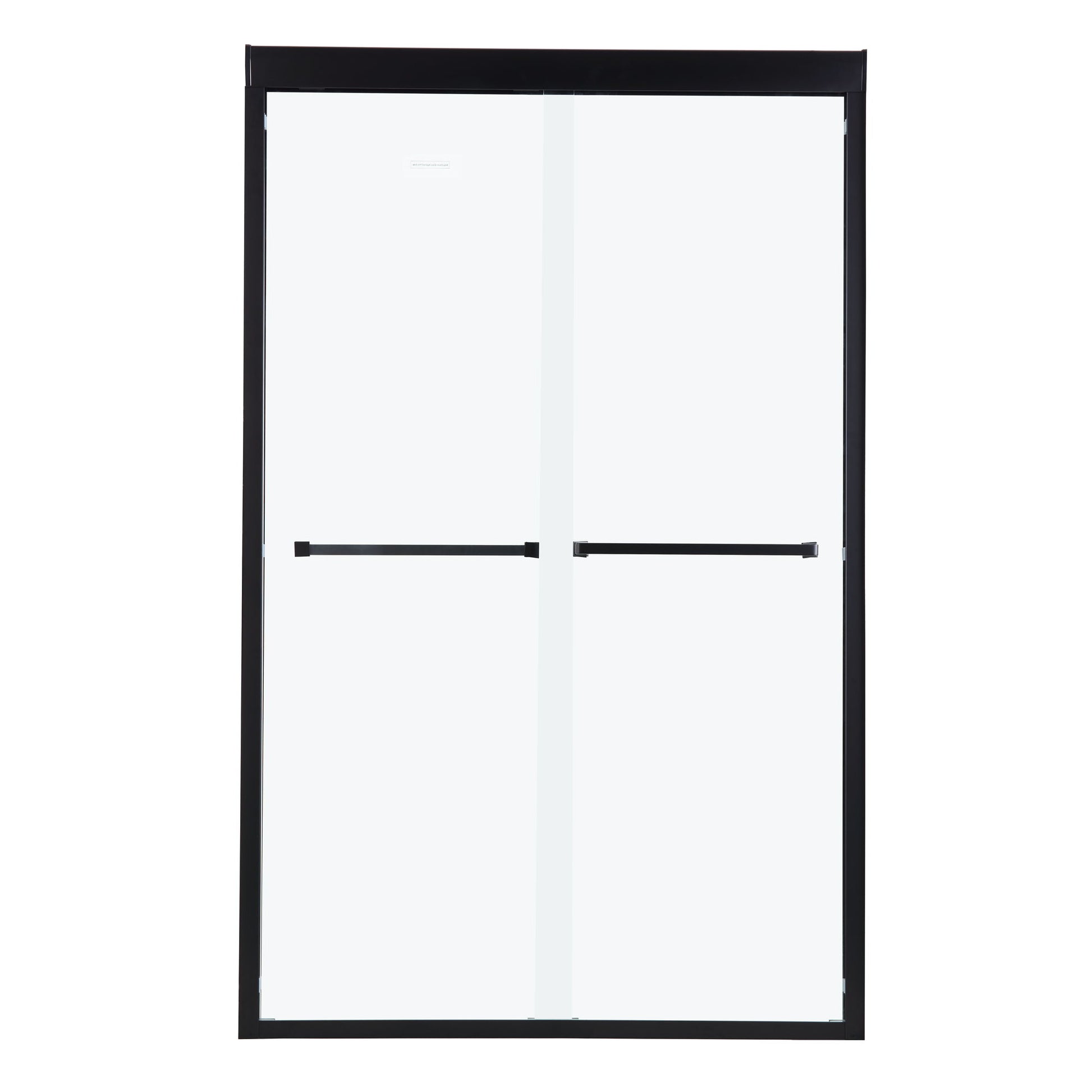 Modern Double Sliding Shower Enclosure, Tempered Glass - Matte Black