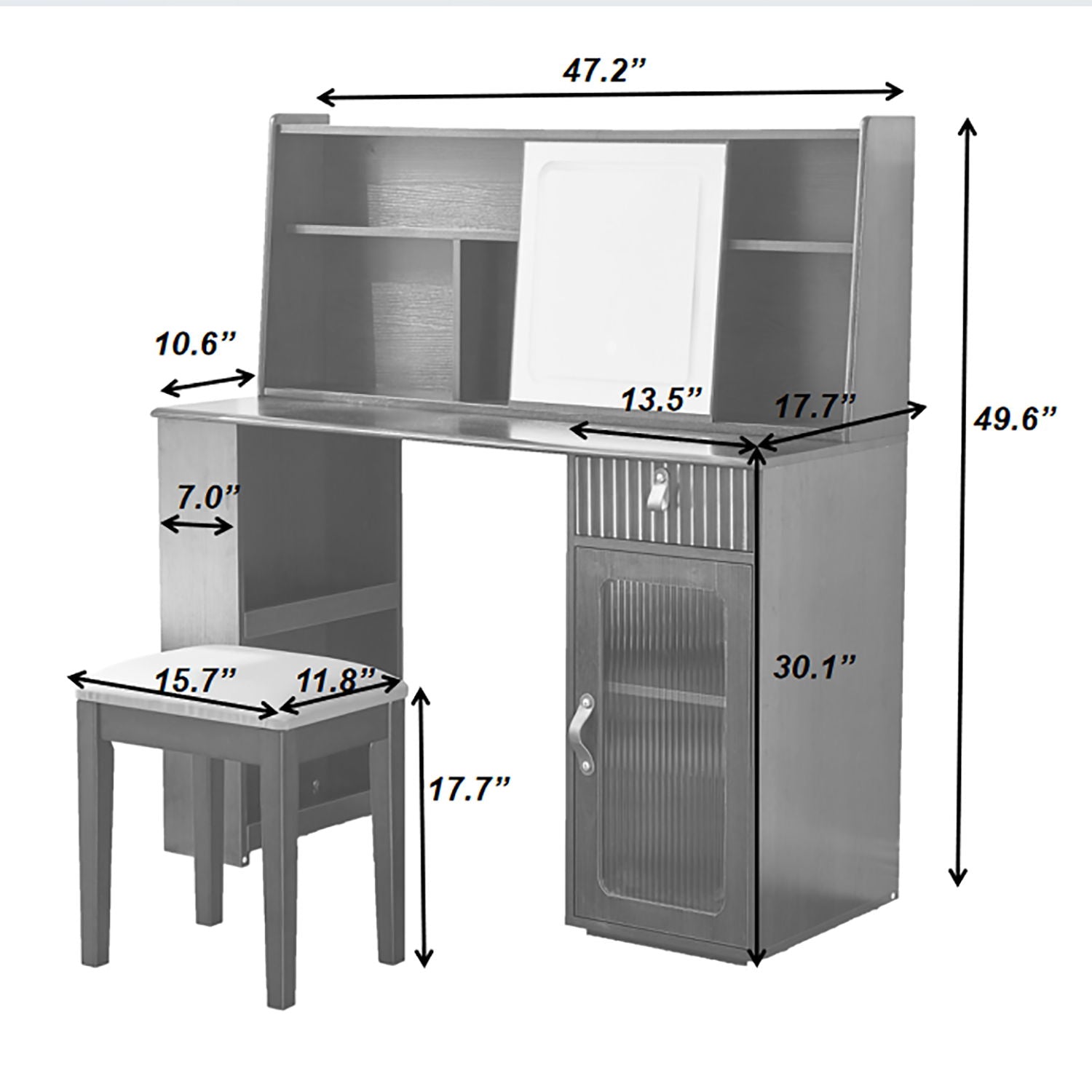 - Ample Storage Solutions: Keep your cosmetics and accessories organized with spacious shelves and a large drawer.